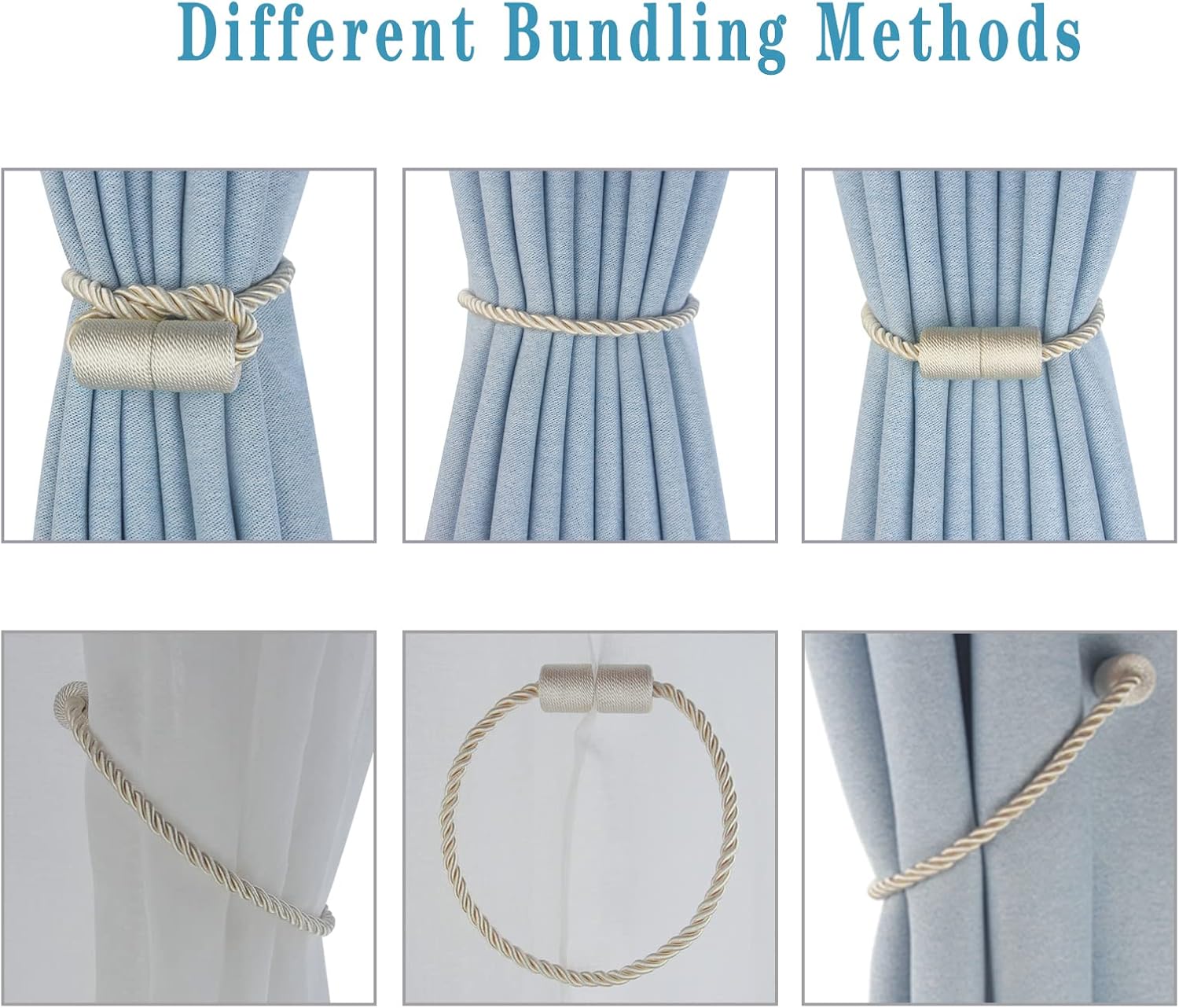 - High-Quality Materials- Magnetic curtain tie backs use an upgraded version of nickel-plated magnets, which are strong and smooth. The brightly colored twisted woven ​texture rope is hand-woven with premium polyester materials. very soft and good feeling. Beige/Gold/Black/White/Grey/Khaki/Coffee/Blue -Eight colors to choose from