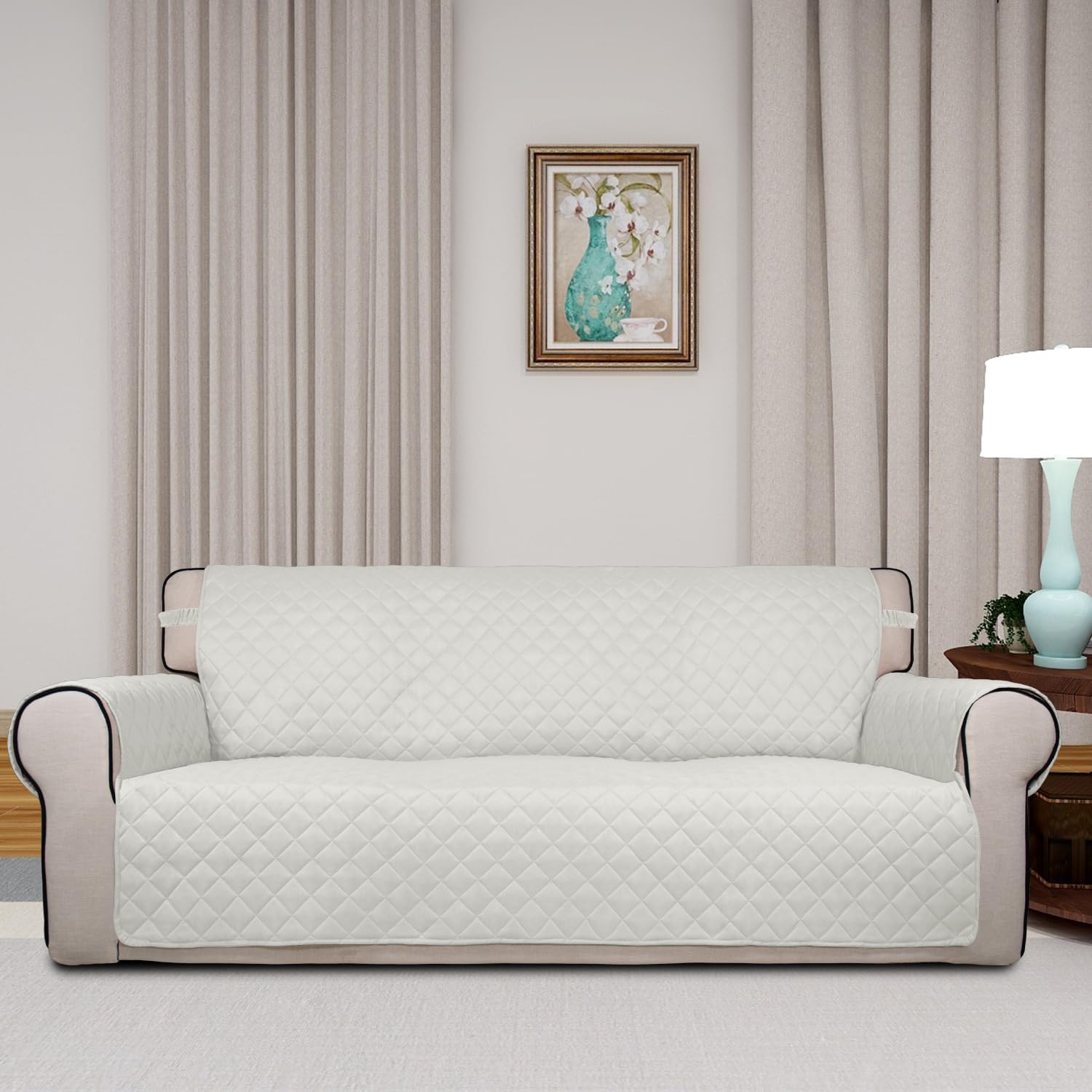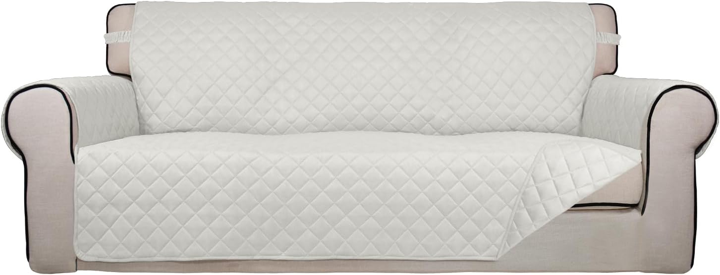 PureFit Reversible Quilted Sofa Cover, Water Resistant Slipcover Furniture Protector, Washable Couch Cover with Non Slip and Elastic Straps for Kids, Dogs, Pets (Sofa, Ivory/Ivory)