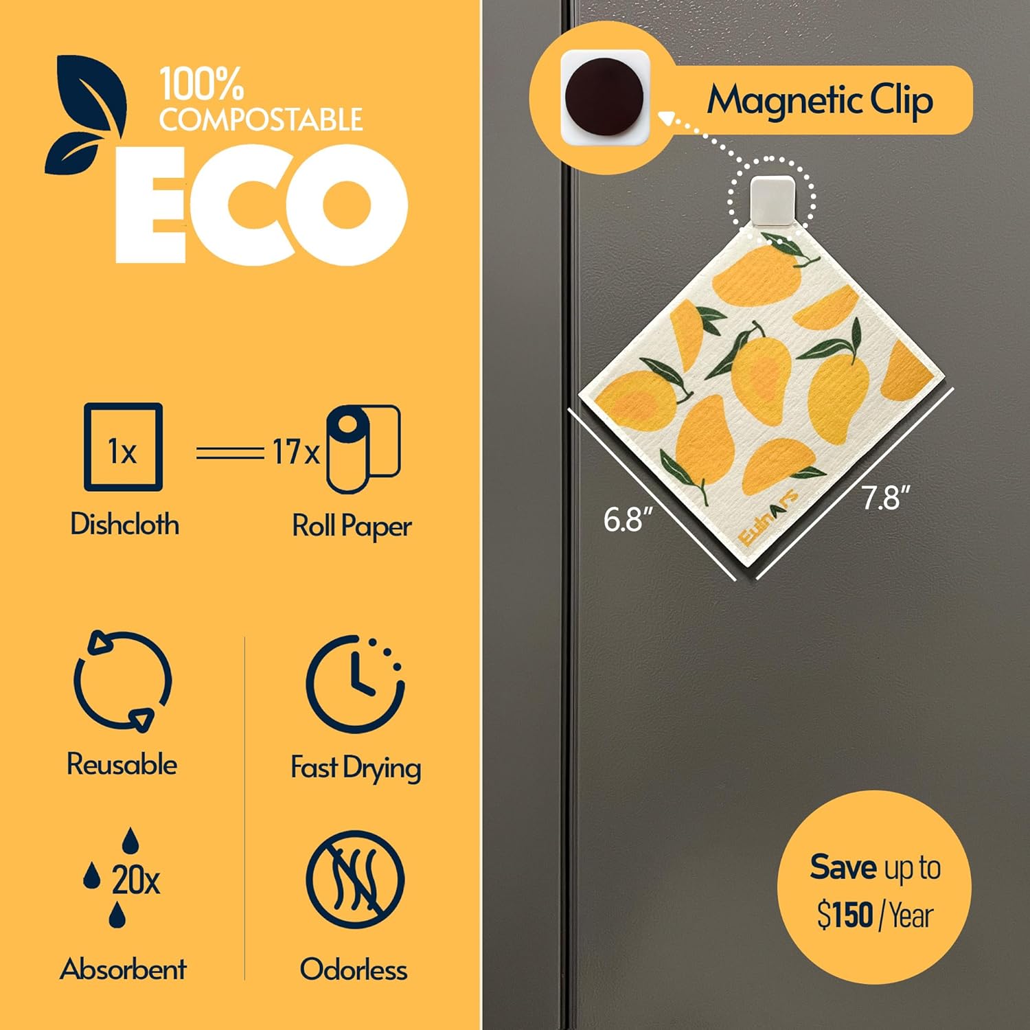- Easy to Clean and Store: Our swedish dishcloths, measuring 7.8 x 6.8 inches, each set comes with 8 cellulose dish cloths in 4 styles, along with 2 self-adhesive clips, 1 magnetic clip, and 9 labeling tags. Customize storage for easy access, hanging them on walls, counters, or refrigerators to keep your kitchen organized