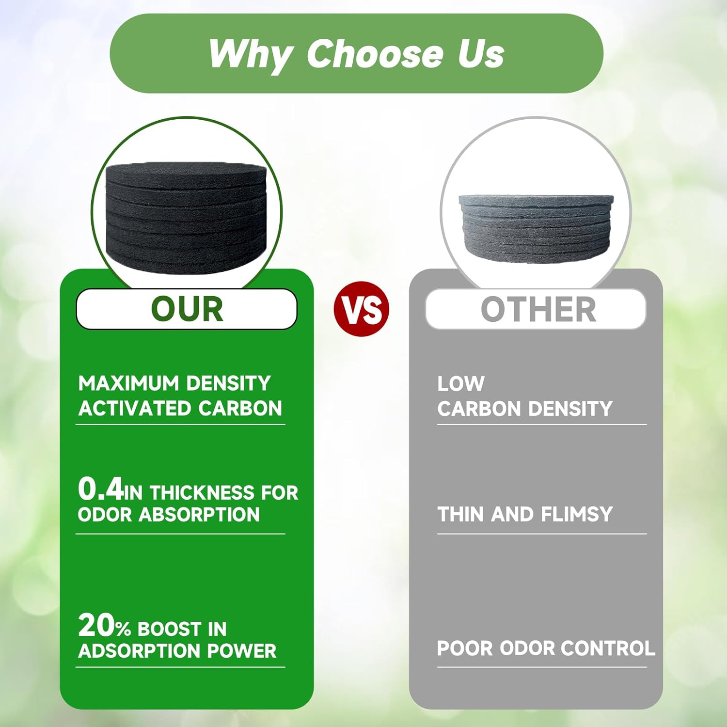 - 【Superior Thickness and Density】: Standing apart with a thickness of 0.4 inches, charcoal filters for compost bucket are twice as dense and twice as thick as standard options, offering enhanced odor absorption and long-lasting use