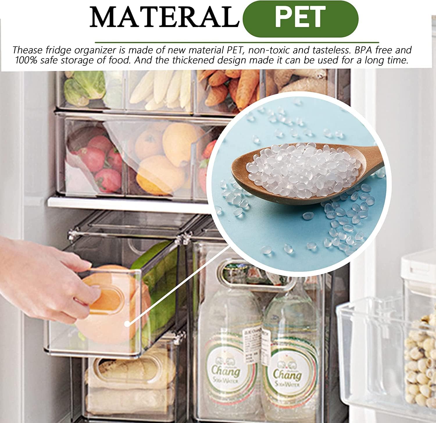 - 【 Safe Material】bealy fridge organizer bins are made of new material food-grade PET, non-toxic and tasteless. non-BPA and safe storage of food. They are made of thicker, PET materials than most similar products, the thickened design made the fridge drawer organizer very sturdy, can be used for a long time. Our fridge organizer bins can resist high temperature and strong low temperature.