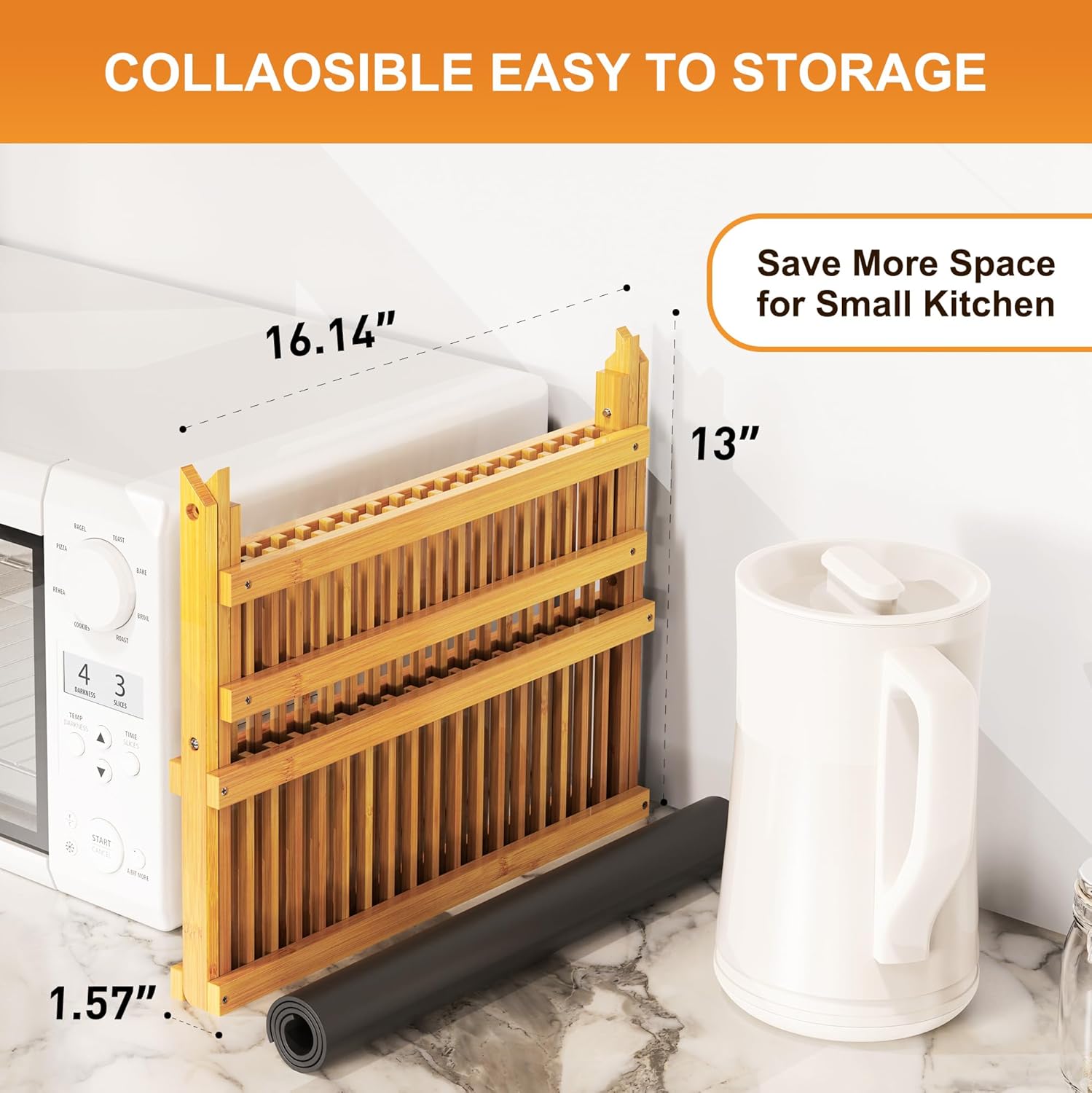 - Foldable & Easy Storage: This folding bamboo dish drying rack for kitchen counter features an X-shape design, occupying a small amount of space. The wooden dish drying rack folds flat which makes it easy to store even in crowded kitchen drawers. The wooden dish drying rack can be stored in a corner or a kitchen Counter. You can easily set and tidy the bamboo collapsible dish drying rack up. Moreover, this innovative and stylish drying holder is also a beautiful home decoration