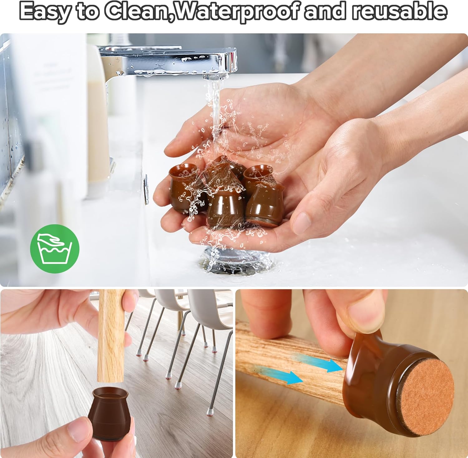 - ✅【Easy to Use】The chair leg covers to protect floors has high transparency, which greatly restore the original color of the table and chair legs, look more natural. The furniture leg cap is easy to install, without the use of tools. When the furniture chair socks are dirty, the chair stoppers can be cleaned and used repeatedly. Mainly suitable for smooth floors such as hardwood, tile, composite floor, and vinyl floor. Clear cap style match with most floors.