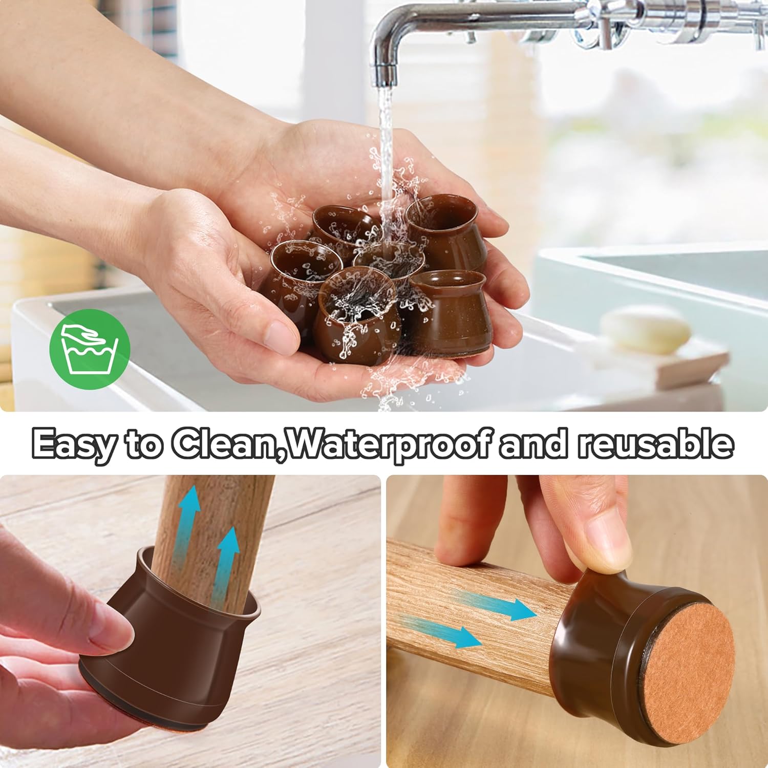 - ✅【Easy to Use】The chair leg covers to protect floors has high transparency, which greatly restore the original color of the table and chair legs, look more natural. The furniture leg cap is easy to install, without the use of tools. When the furniture chair socks are dirty, the chair stoppers can be cleaned and used repeatedly. Mainly suitable for smooth floors such as hardwood, tile, composite floor, and vinyl floor. Clear cap style match with most floors.