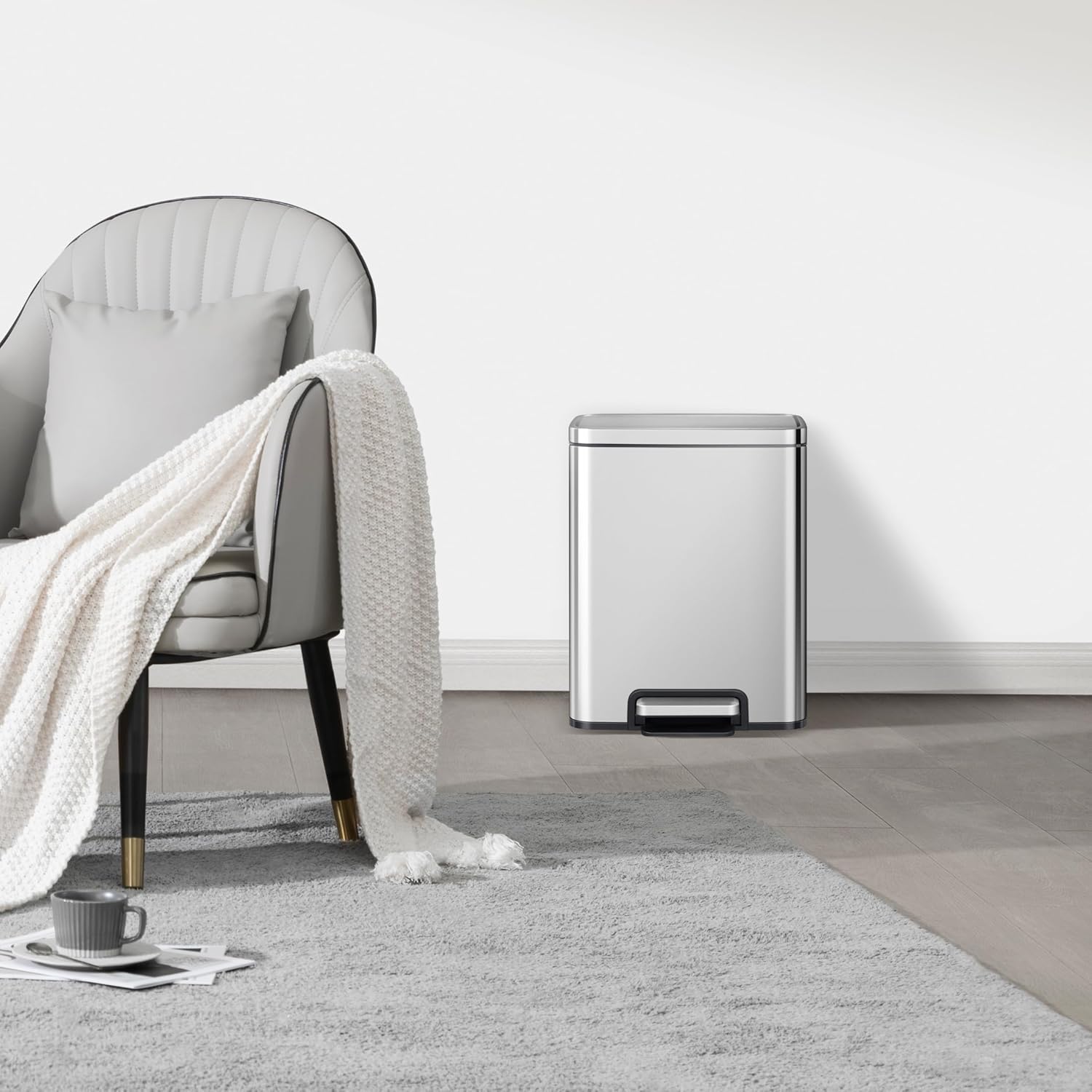 - Premium Steel Pedal - Step up to a new level of durability with our enhanced pedal. Our step trash cans' durable stainless steel foot pedal is built to last over 200,000 times, giving you decades of reliable use!