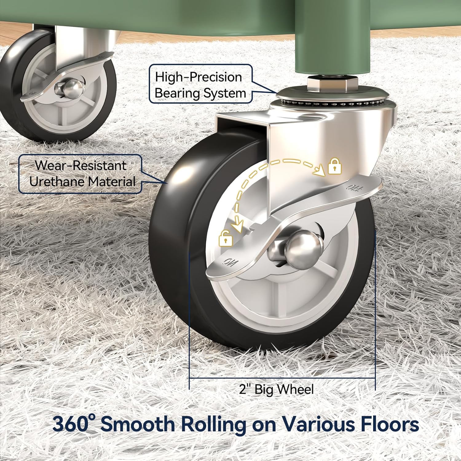 - Effortless Movement, Stable Under Heavy Loads: A solid and finely engineered structure paired with large, premium heavy-duty wheels ensure this metal rolling cart with wheels glides smoothly and stays steady even when loaded with heavy items