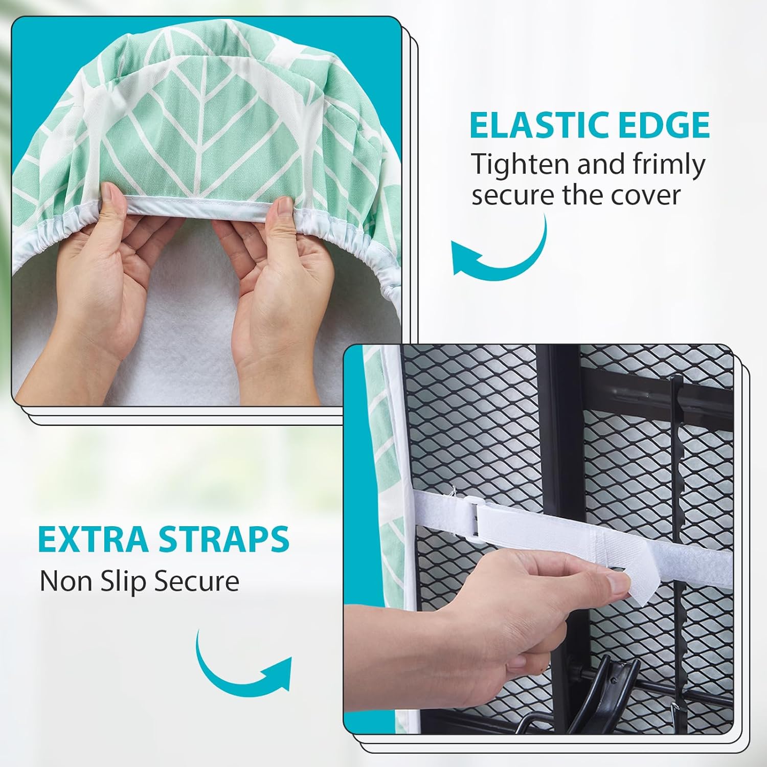 Extra Wide Ironing Board Cover with Padding 18 x 54 inch Heat Reflective with Hook and Loop Fasteners, Thick Padding with Elasticized Edges, 3 Layers Iron Board Cover (Green Leaf)