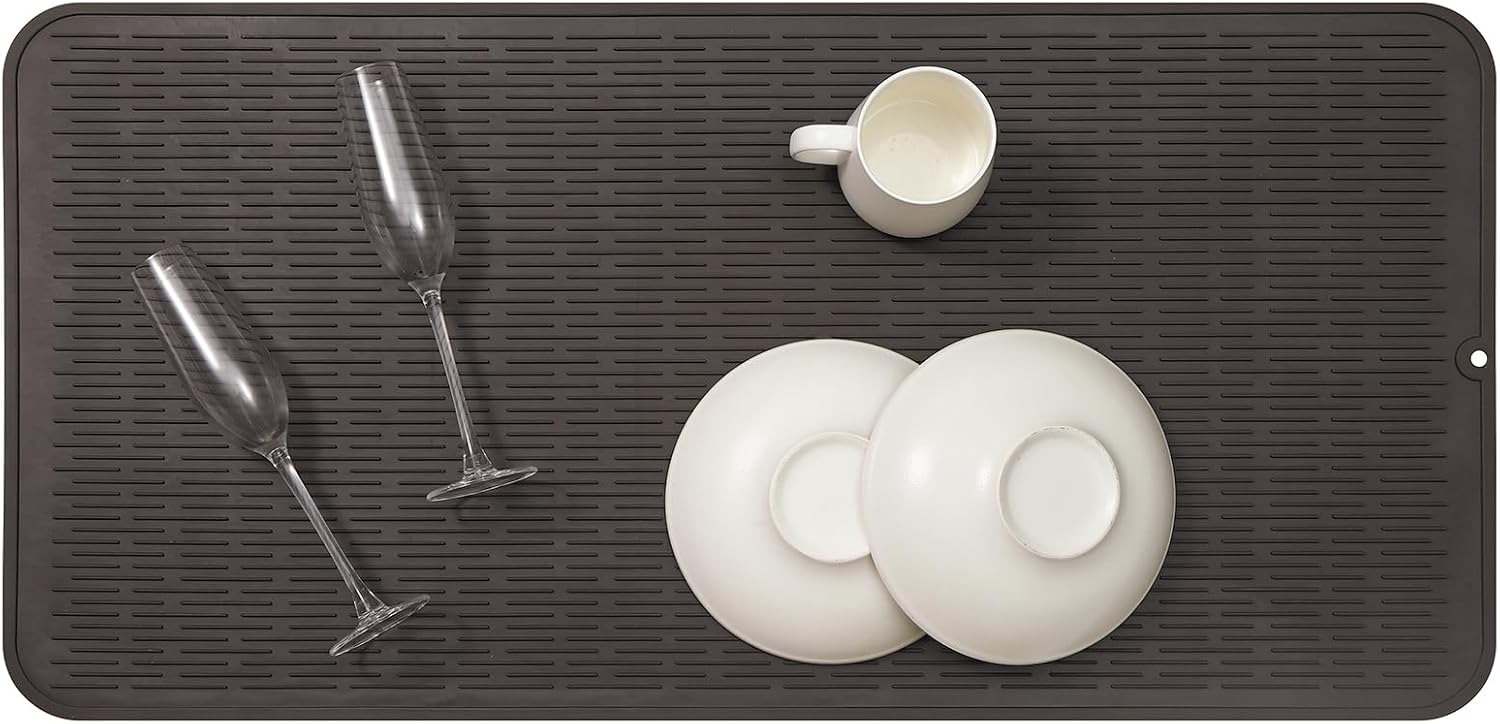 Silicone Dish Drying Mat for Multiple Usage,Easy clean,Eco-friendly,Heat-resistant Silicone Mat for Kitchen Counter or Sink,Refrigerator or Drawer Liner Coffee 5XL 36inches x 18inches