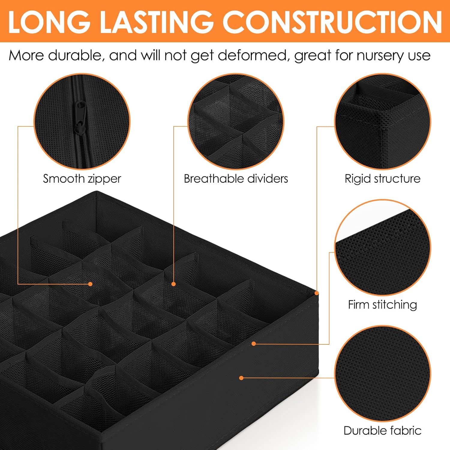 - 【QUALITY CONSTRUCTION】 Made of 80gsm thick non-woven fabric and reinforced stitching, our wardrobe clothes organizer is much more durable for long term use. 3.0mm Plastic boards added at the 4 sides are breathable and odorless, so great for nursery room use. Also sturdy enough, so stackable and not easy to deform.