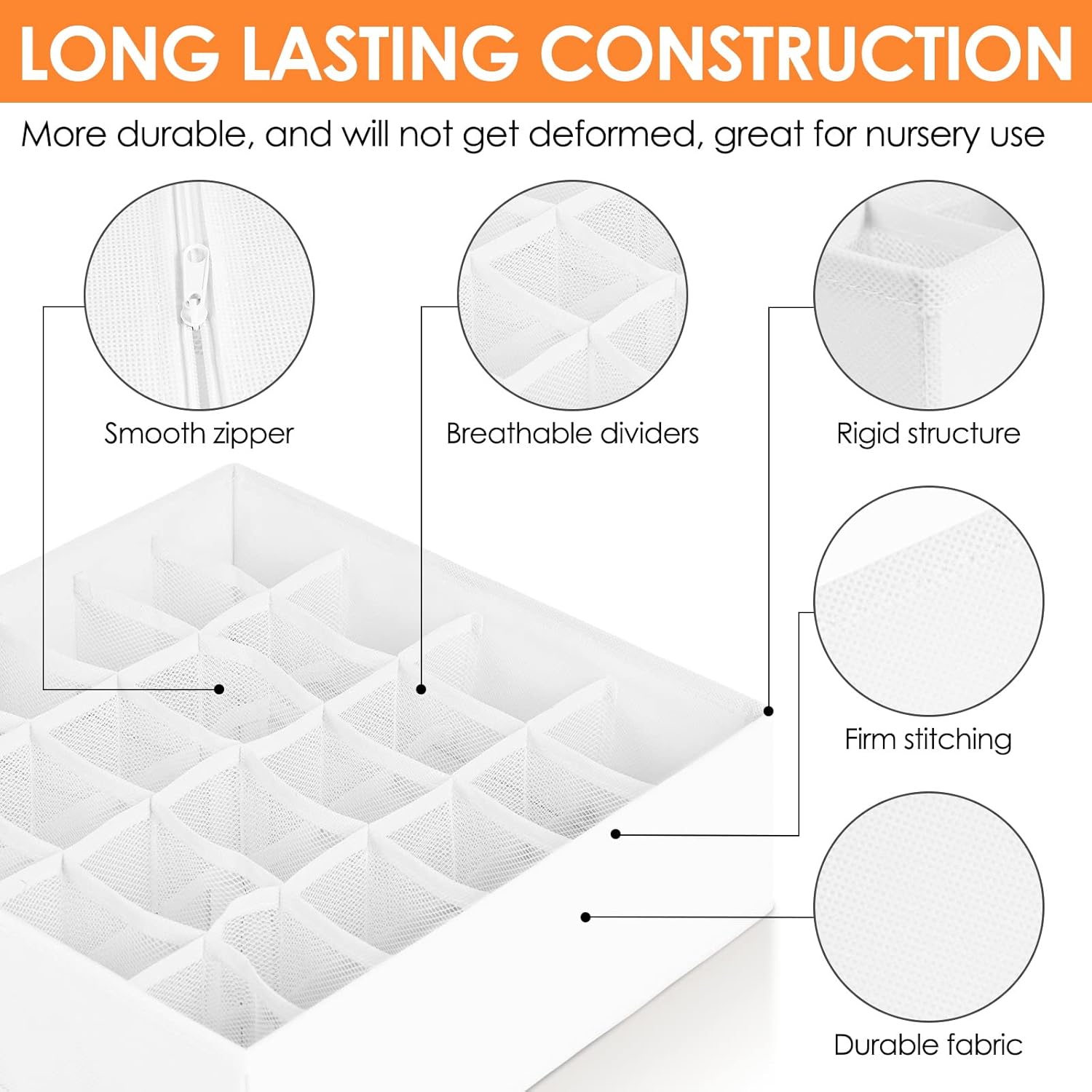 - 【QUALITY CONSTRUCTION】 Made of 80gsm thick non-woven fabric and reinforced stitching, our wardrobe clothes organizer is much more durable for long term use. 3.0mm Plastic boards added at the 4 sides are breathable and odorless, so great for nursery room use. Also sturdy enough, so stackable and not easy to deform.