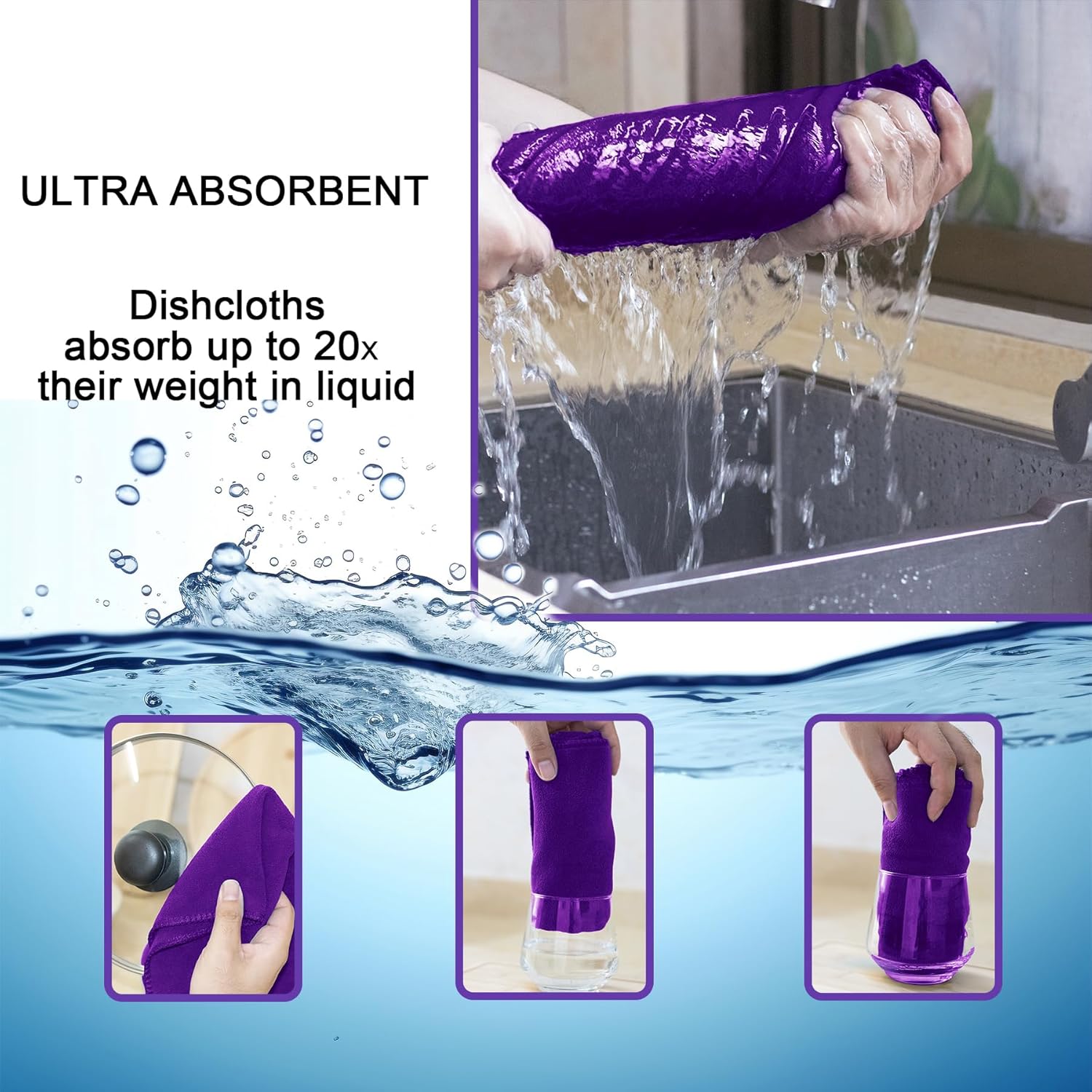 kimteny 13x28 Inches Kitchen Cloth Dish Towels, 400 GSM Premium Dishcloths, Super Absorbent Coral Velvet Microfiber Cleaning Cloths, Fast Drying Rags for Washing Dishes (12 Pack, Purple)