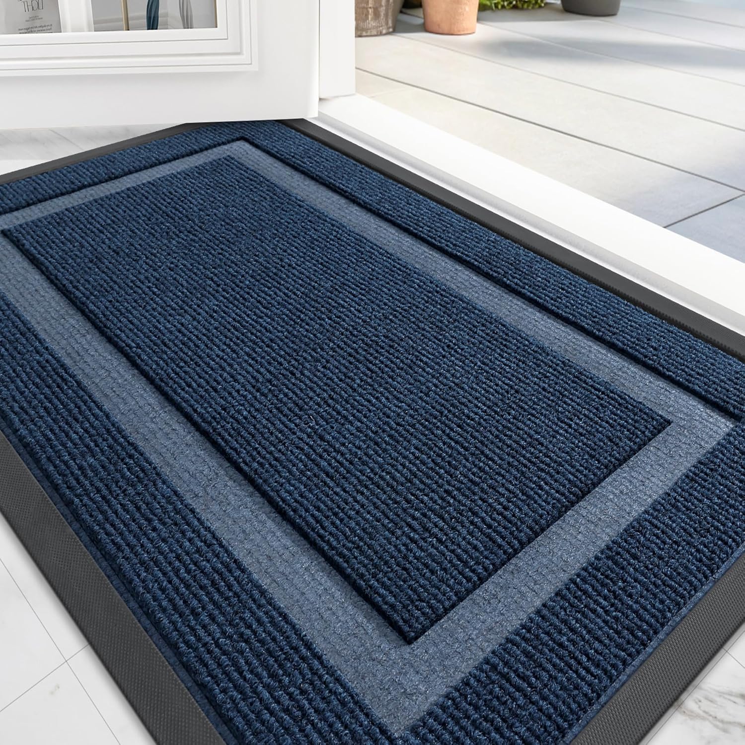 OLANLY Front Door Mat Indoor Outdoor Entrance, Waterproof All-Season, All-Weather Doormat, Sturdy Natural Rubber, Fade Resistant, Low Profile, Easy Clean Patio Porch Entryway Mat, 47x32, Blue