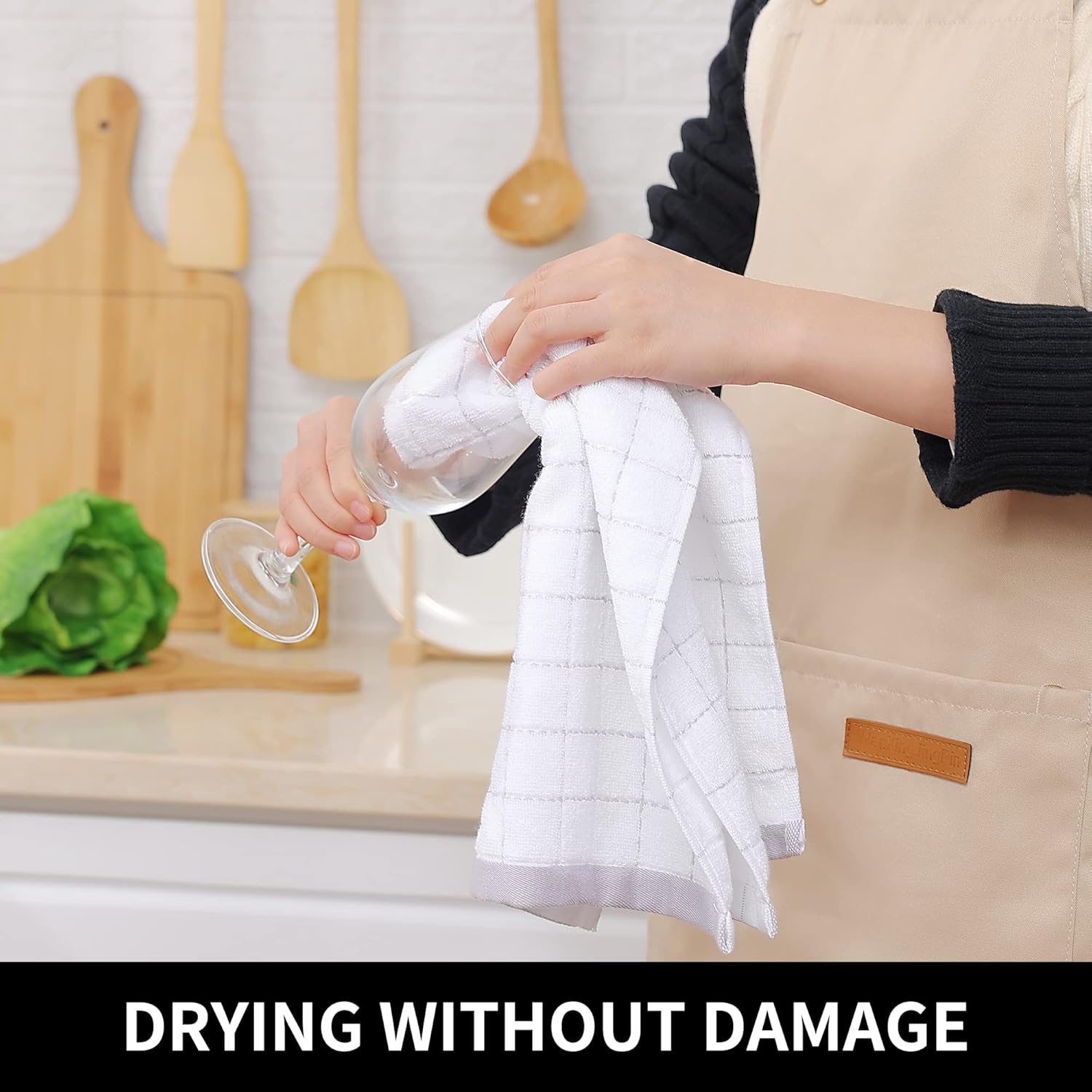 Homaxy 100% Cotton Terry Kitchen Towels(White, 13 x 28 inches), Checkered Designed, Soft and Super Absorbent Dish Towels, 6 Pack