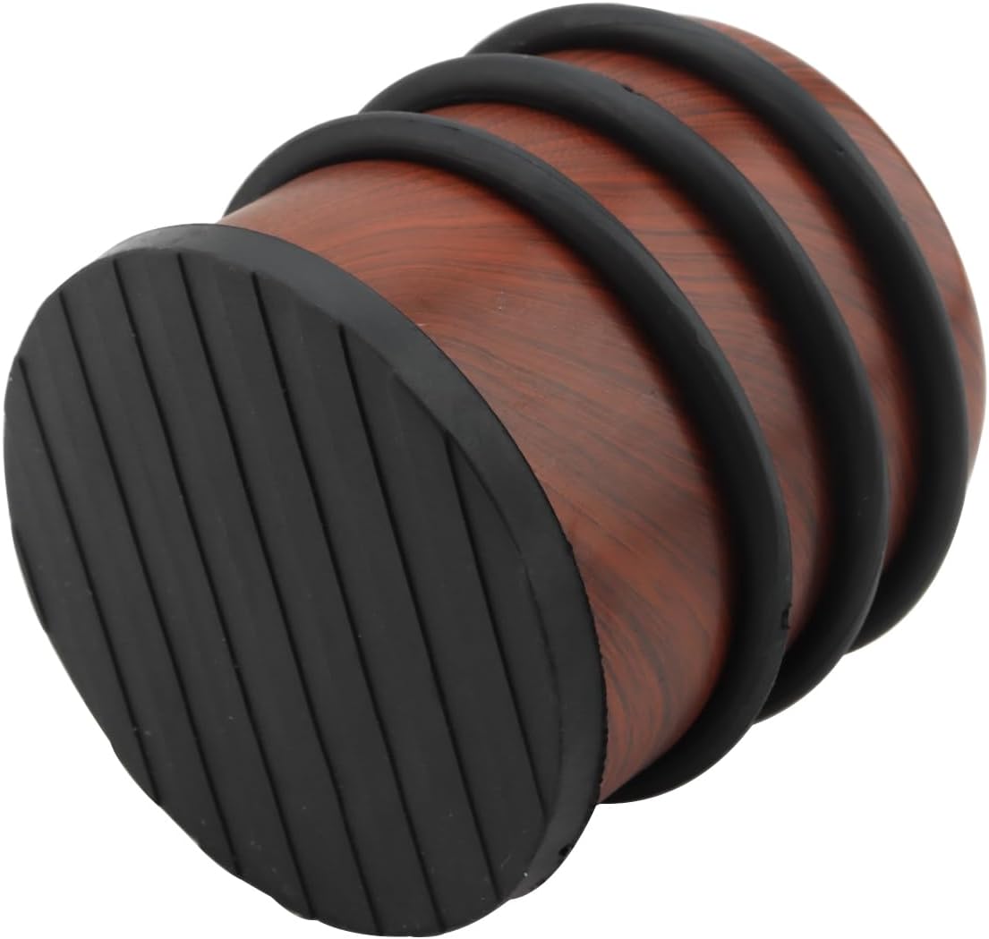 KINJOEK 4 PCS 1KG Heavy Duty No Drill Door Stopper, Stainless Steel Door Stop, Surrounded with Protective Rubber Bands Anti-Slip Door Wedge for Office, Home, Garage, Laundry Door, Brown Te