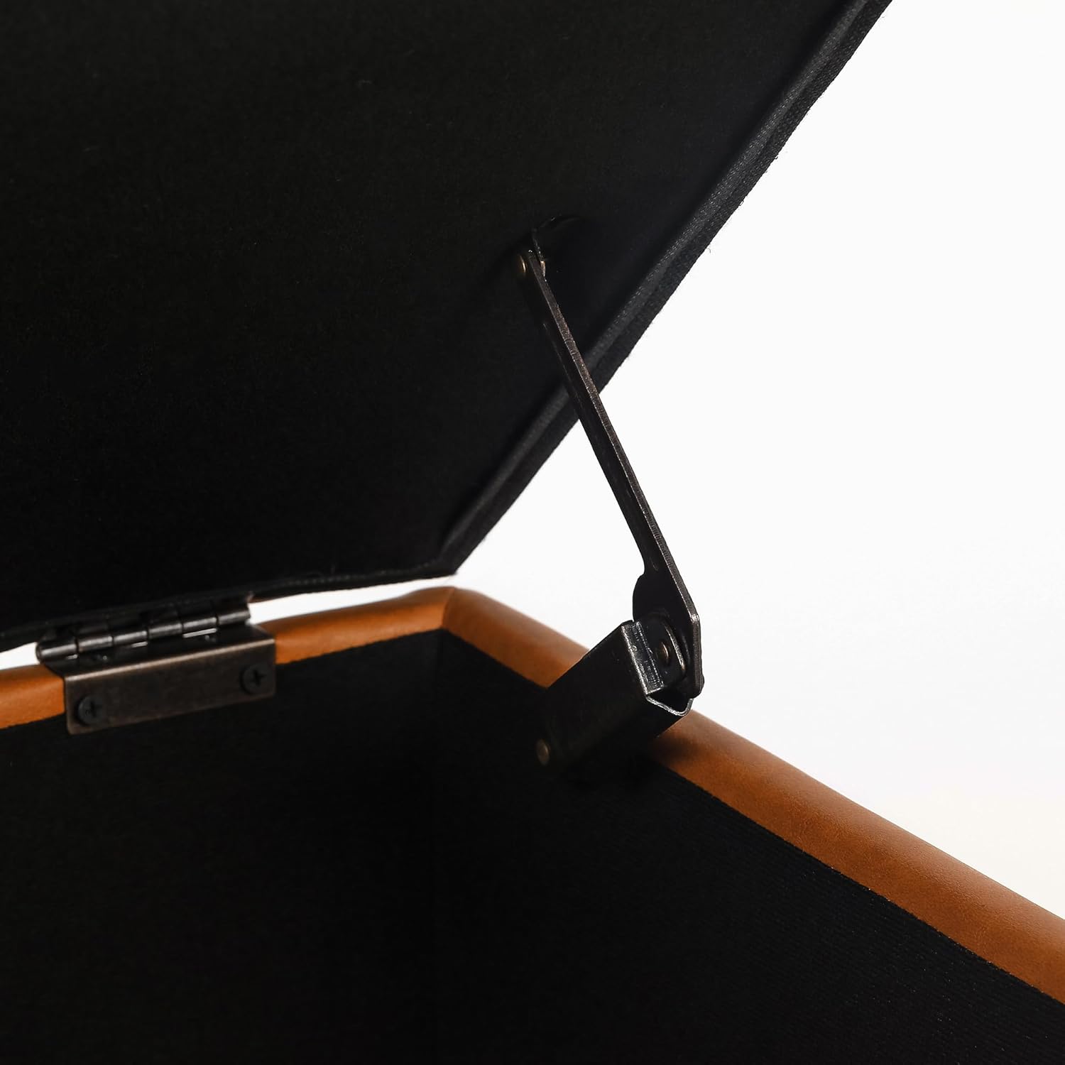 - Unique Design: Special hand strap design makes opening the ottoman easier. Just pull up the strap and the lid can be opened easily and the metal crank arm prevents the falling top hit your fingers.