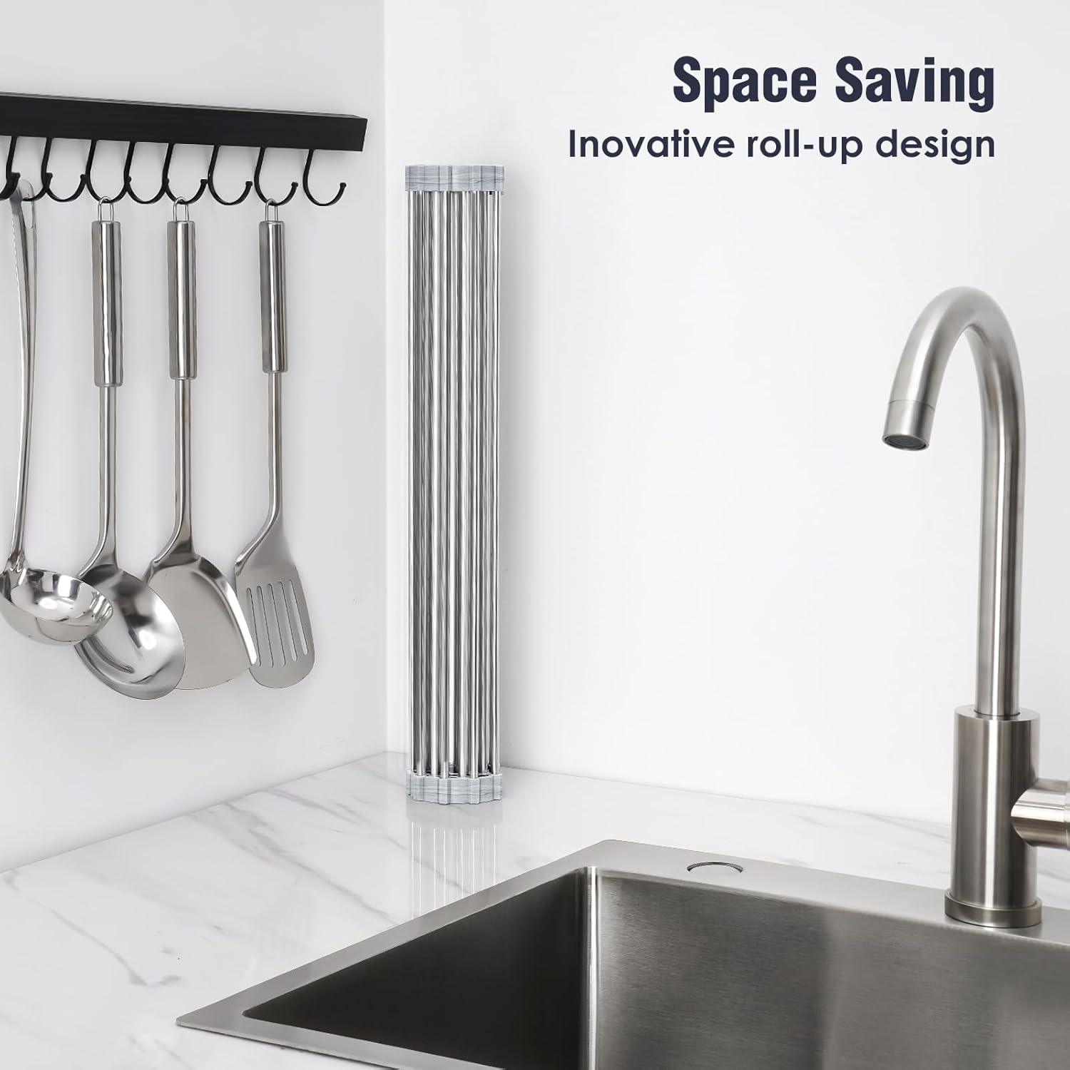 - Compact & Foldable Design: This design effortlessly rolls up for convenient storage, ensuring your kitchen remains tidy. Not only does it maximize space, but it's also a breeze to clean. It's suitable for both hand and machine washing.