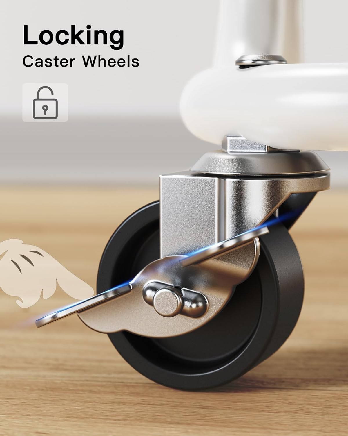 - Considerate Design:Two wheels are equipped with locks to keep the storage utility cart firmly in place, a great feature for families with children and pets. The 4 tier rolling cart is designed with steel mesh baskets for better airflow to keep items such as vegetables and fruit dry. Each utility craft cart basket of this utility cart is deep so that your storage stays in place, even if it is round-shaped or prone to shifting during movement.