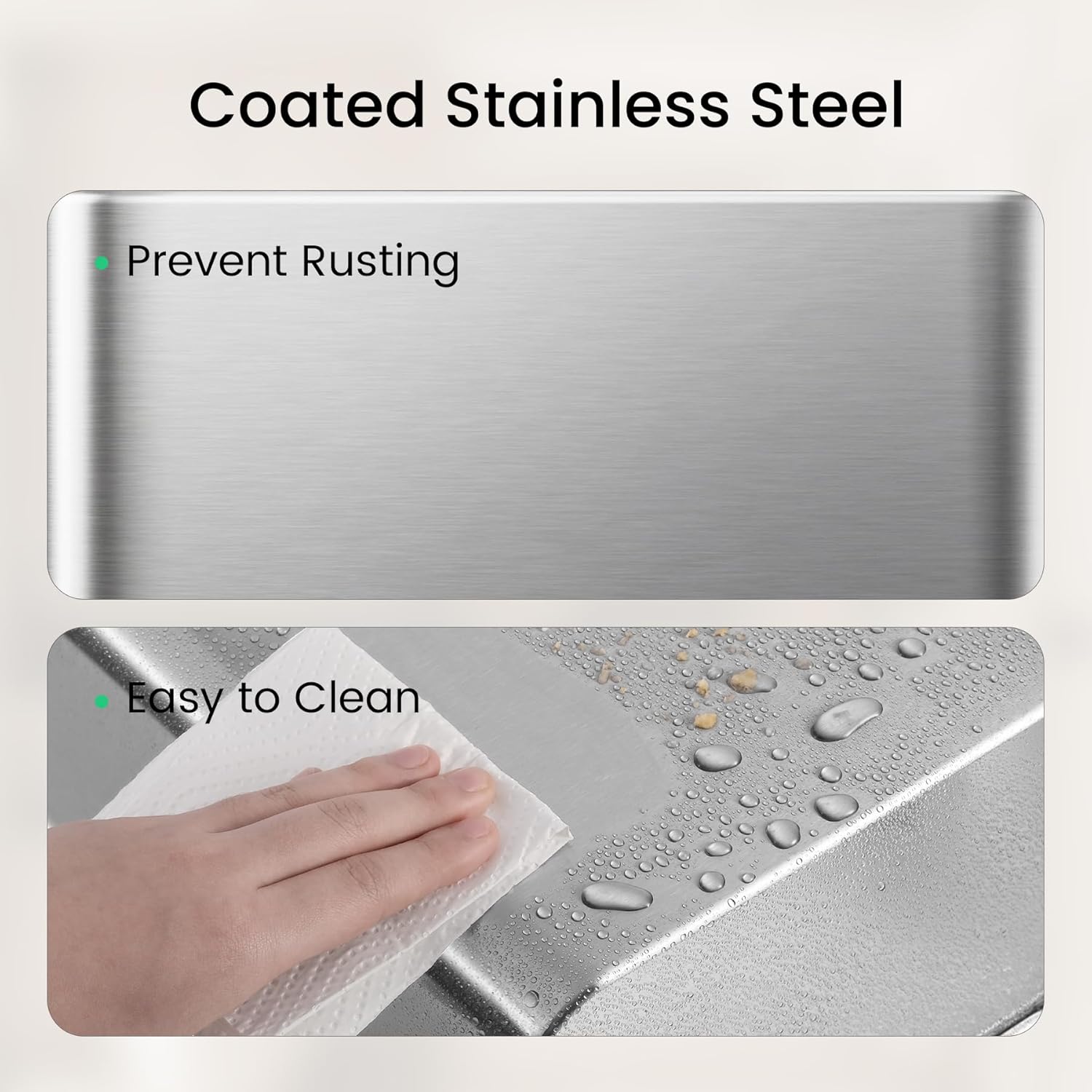 - Anti Rust & Easy to Clean: Quality stainless steel with a sturdy finish prevents rusting. The dirt can be easily cleaned with just water or a cloth, keeping the metal garbage can looking new after prolonged usage