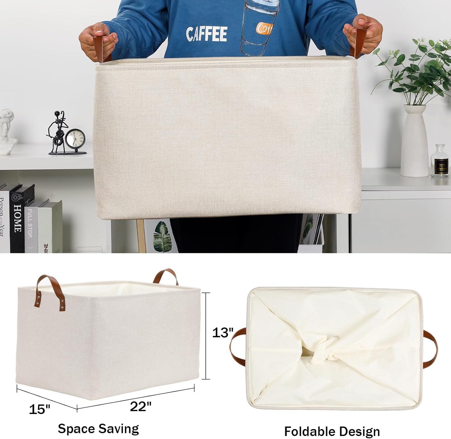 DULLEMELO Beige Storage Baskets for Organizing, Set of 2 Extra Large Canvas Fabric Storage Baskets with Handles, Foldable Storage Bins Baskets for Blankets Living Room