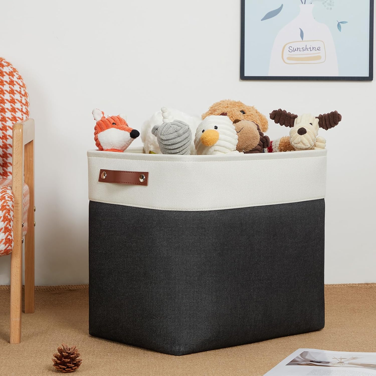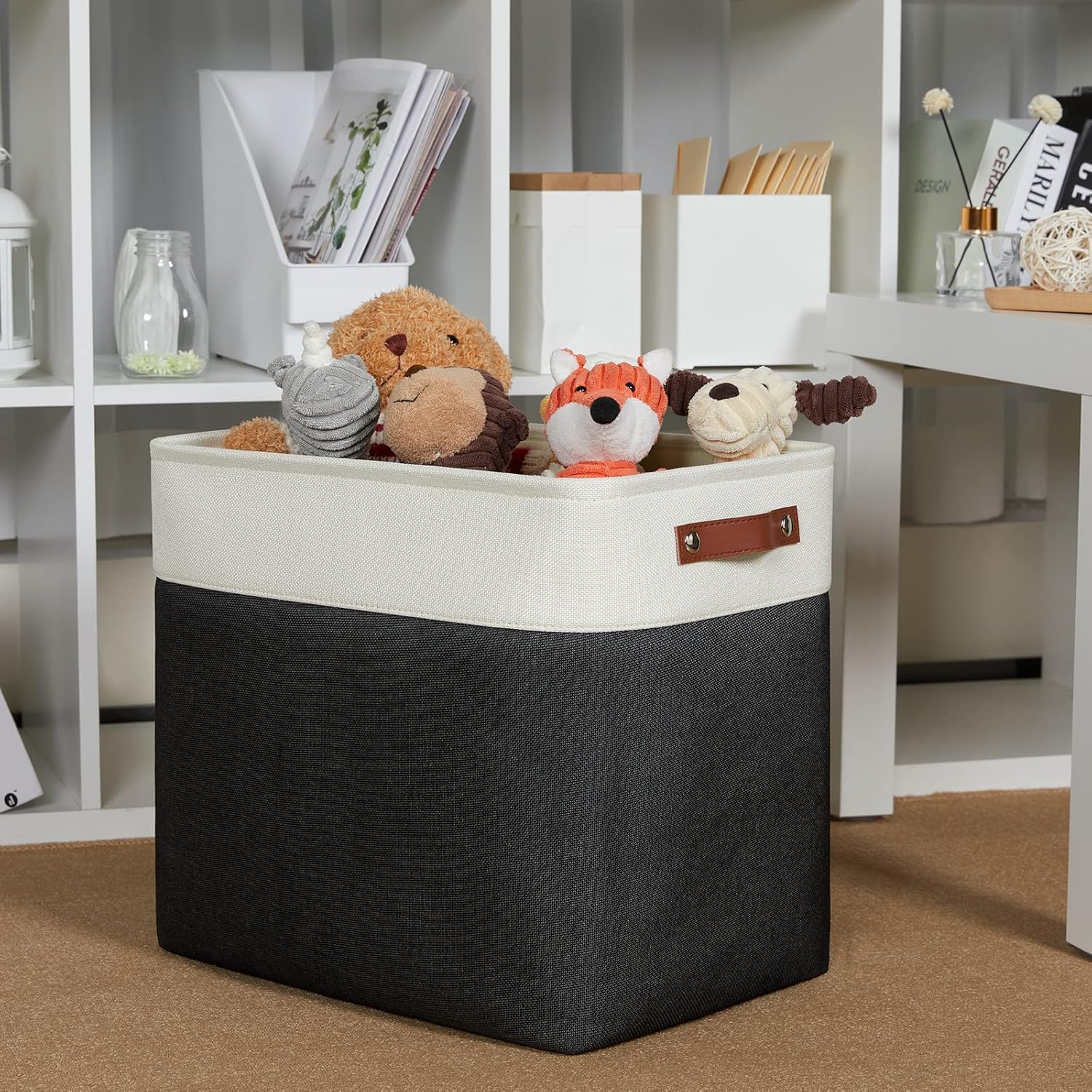 DULLEMELO Extra Large Storage Baskets, Fabric Storage Bins for Organizing Shelves Nursery Toys Books, Closet Baskets and Bins with Handles, White&Black 2-Pack