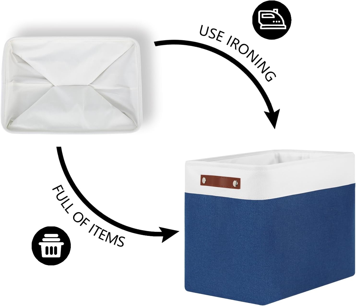 - 【Care】The fabric basket set comes with compression packing which may result in wrinkled and crumpled in long-distance transit. It can be smoothed out by steam iron.