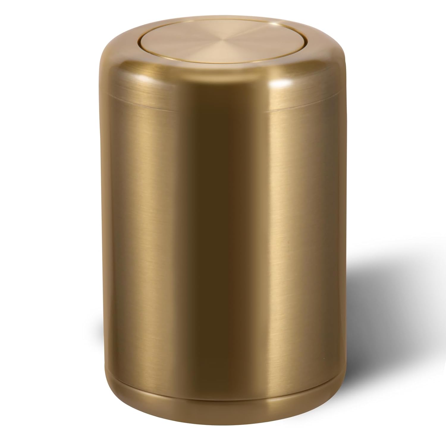 Waste Can 3 Gallon with Swing Lid,Brushed Stainless Steel Gold Trash Can,Metal Cylindrical Garbage Can,Brass Wastebasket Bin for Bathroom,LivingRoom,Office,Kitchen,Bedroom,Hotel (Gold)