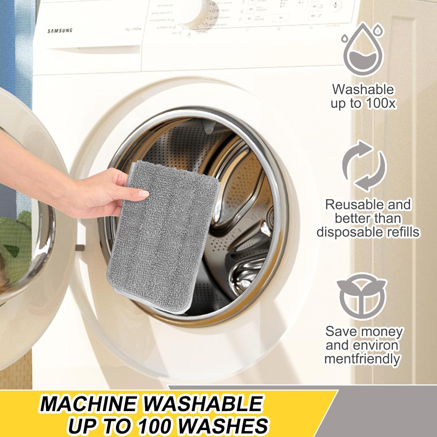 • SUPERFINE MICROFIBER - Our spray mop heads adopt the high quality microfiber whose decontamination ability is further improved, fully absorb pet fur, hair, debris, dust, oil or other stubborn stain, durable and reusable.
