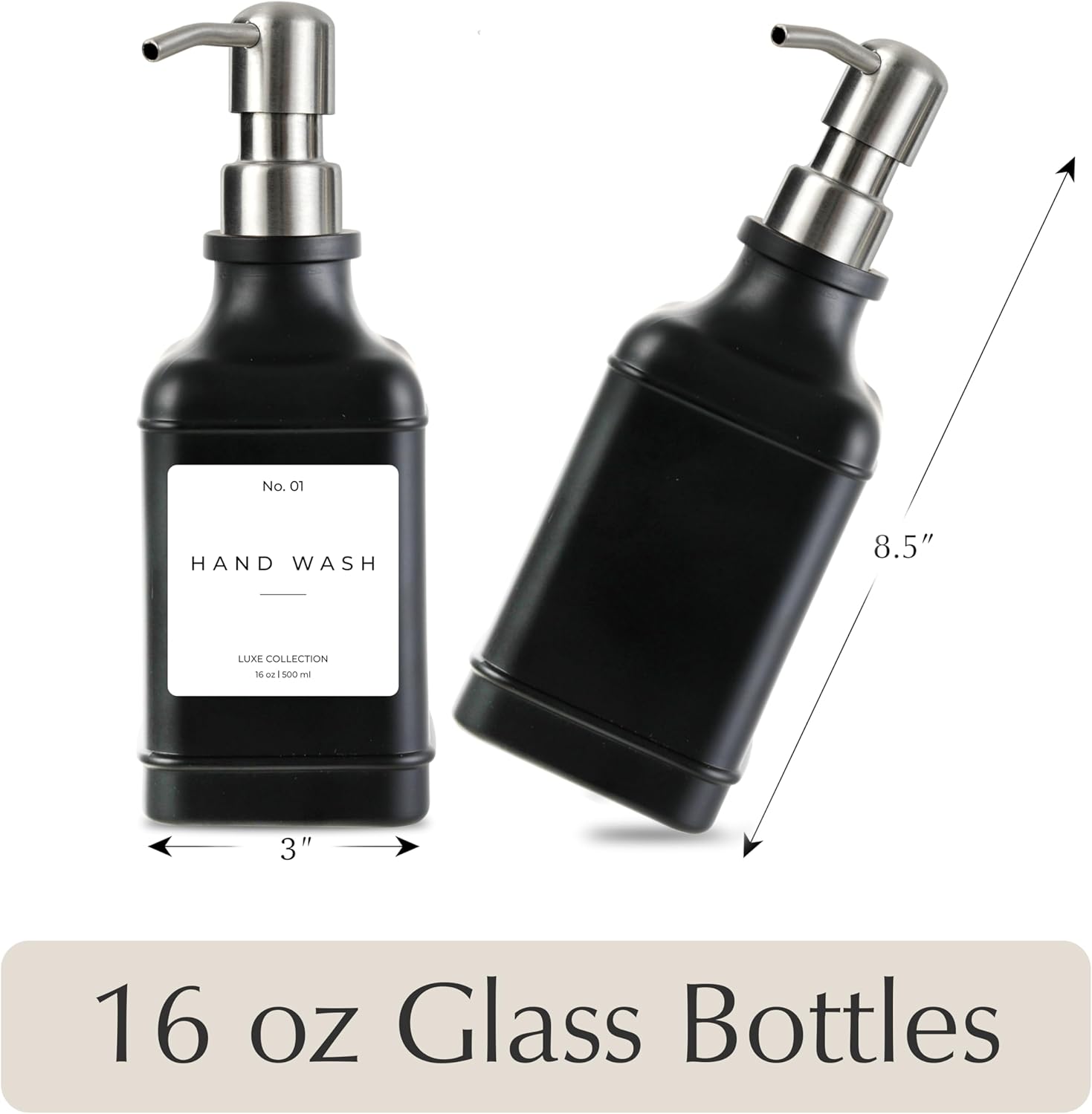 - ✅ PREMIUM QUALITY THAT LASTS: Designed to complement any space, these 16 oz glass soap dispensers are perfect for hand soap, dish soap, lotion, or shampoo. Ideal for sinks in your kitchen, bathroom, laundry room, or guest bath. Unlike dispensers that peel or break down, our bottles are made from thick, durable glass that resists wear and looks elegant on any countertop.