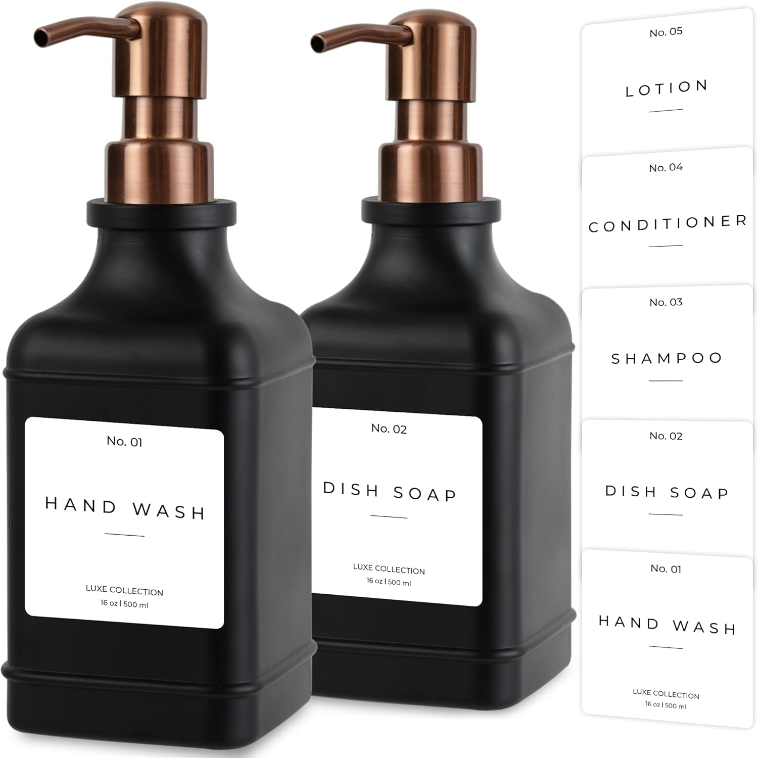 - ✅ 5 WATERPROOF LABELS: Now with 5 stickers, it's your choice to use the Kitchen Soap Dispenser Set with Dish Soap for hand soap, dish wash, lotion, conditioner, or shampoo. To clean the lotion dispenser set for the bathroom and kitchen sink soap dispenser set, just run the bottle under water and watch any residue simply wash off. With our exclusive no-leak pump, the bottle enables you to put out a good amount of soap with a single pump.