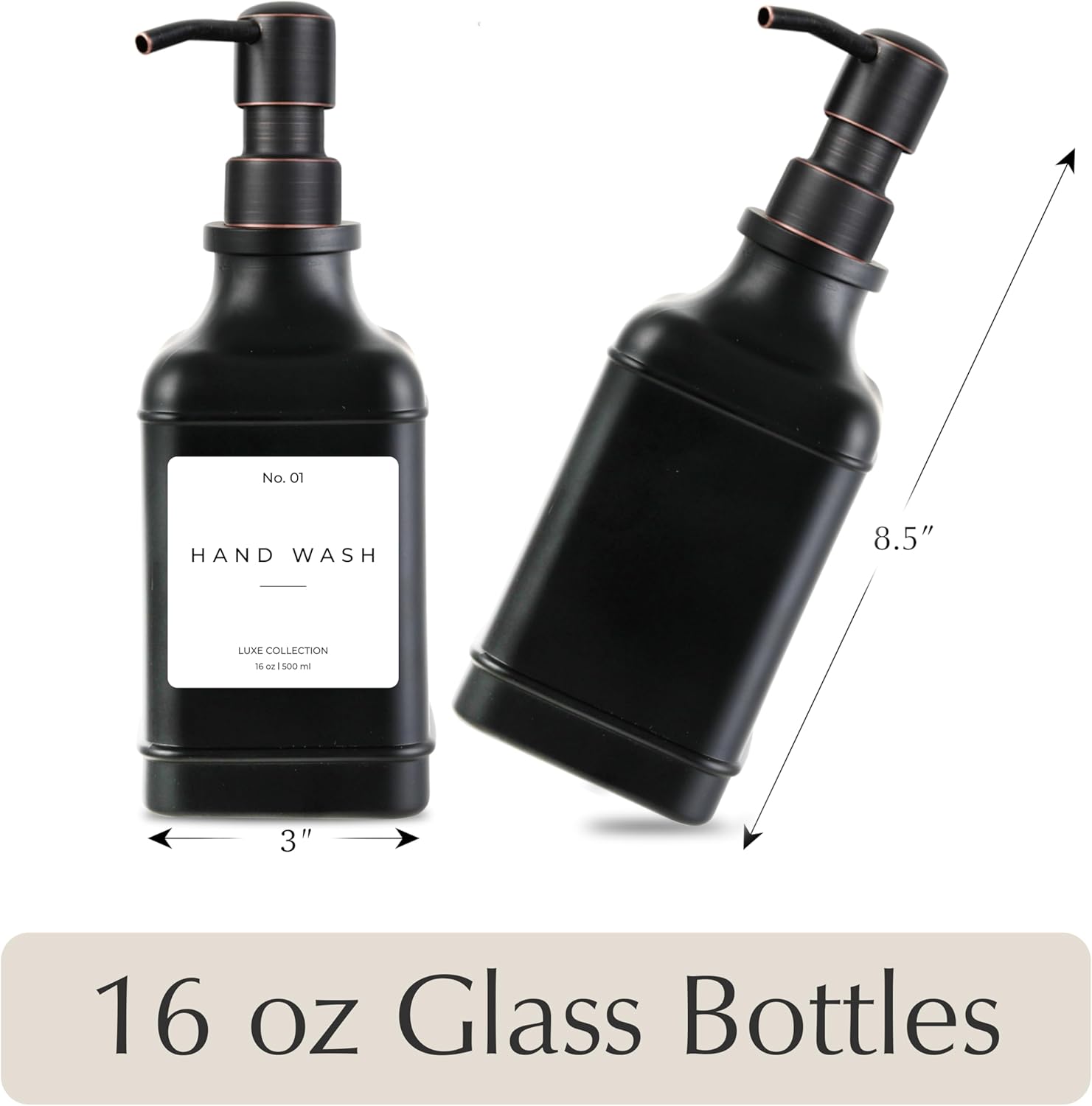 - ✅ PREMIUM QUALITY THAT LASTS: Designed to complement any space, these 16 oz glass soap dispensers are perfect for hand soap, dish soap, lotion, or shampoo. Ideal for sinks in your kitchen, bathroom, laundry room, or guest bath. Unlike dispensers that peel or break down, our bottles are made from thick, durable glass that resists wear and looks elegant on any countertop.