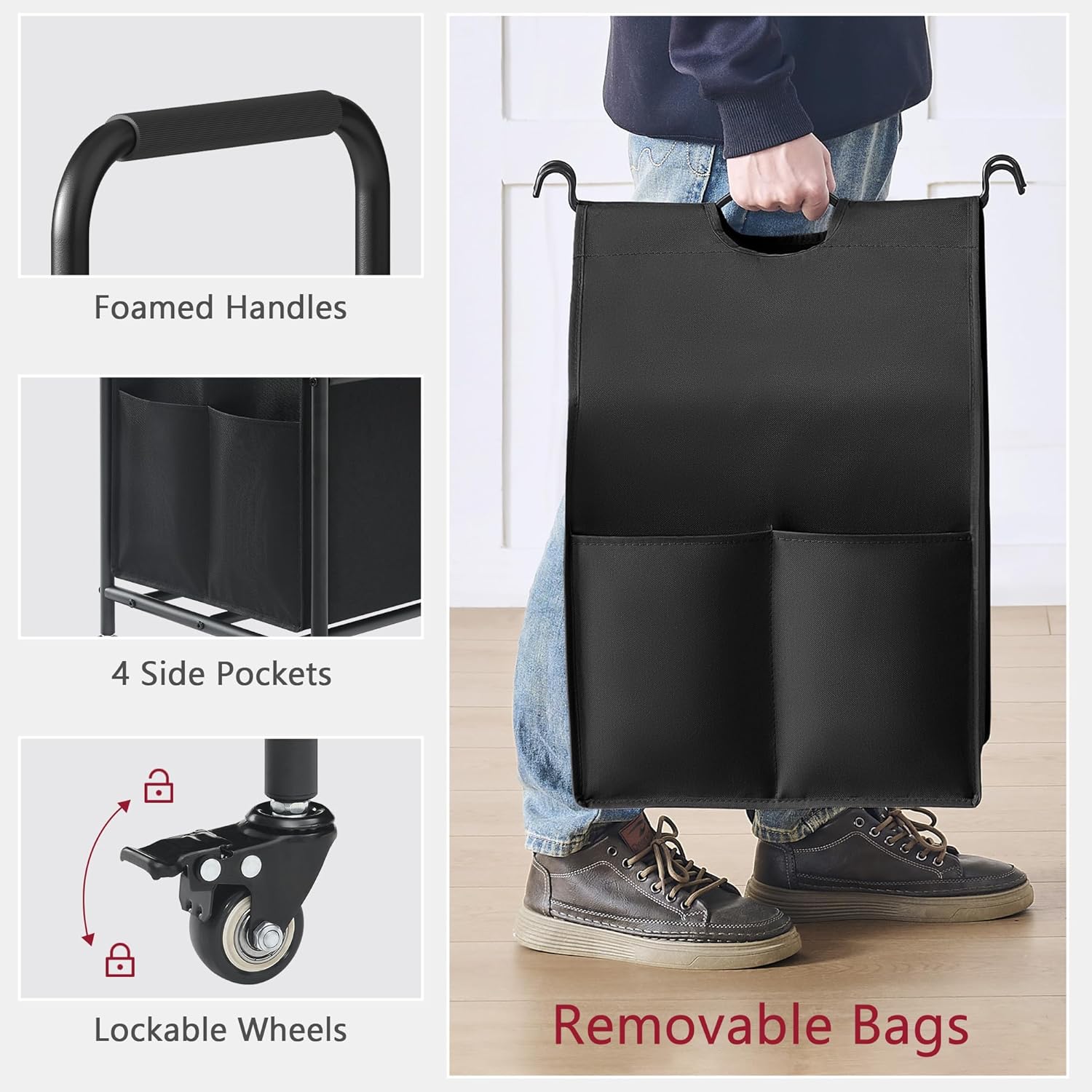 - Efficient Sorting Helper: The rolling laundry sorter comes with 5 separate laundry bags, and the clothes separation bags of different colors allow you to easily sort dark and light clothes. Simply use the two metal handles to remove the laundry bags individually from the laundry sorter.