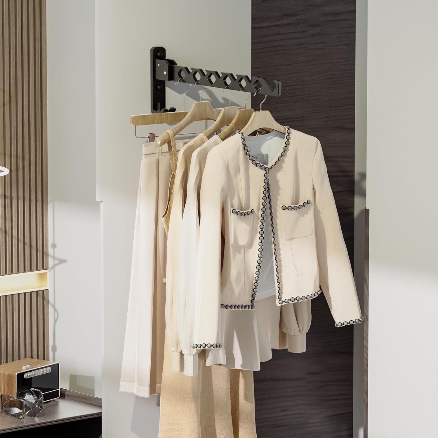Dr.DJ Wall Mount Coat Hanger Holder Black Clothes Drying Organizer Rack Garment Hooks Aluminium Retractable Folding Indoor Wall Mounted Hanger for Laundry Room Bedroom Black 2Pack with 80cm Rod