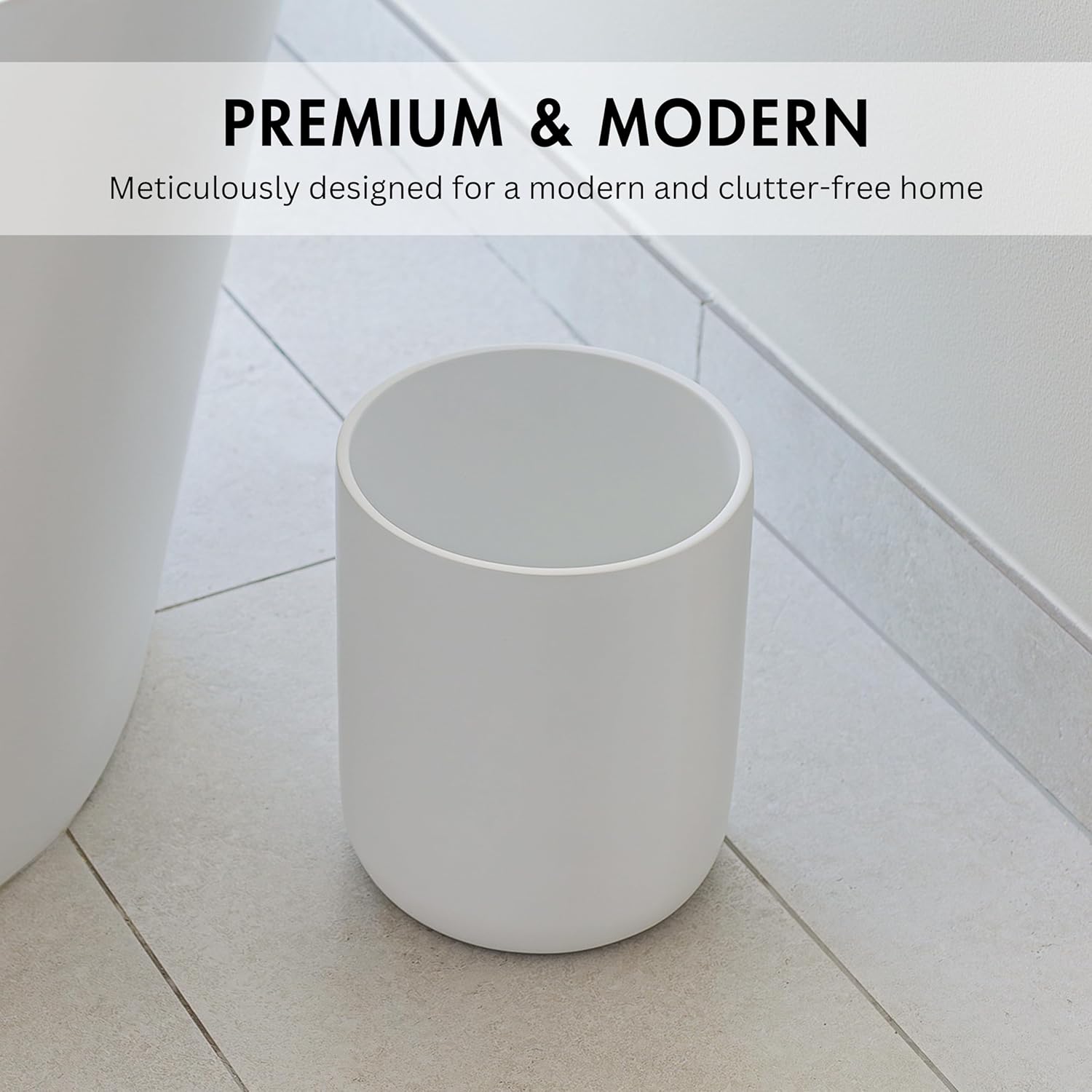 Matte White Round Compact Trash Can Mini, 2 Gallons / 7.5L Garbage Bin, Tiny Wastebasket for Bathrooms, Office, Under Desk, Bedroom, Laundry Room, Kitchen, Kids Room, and Dorm