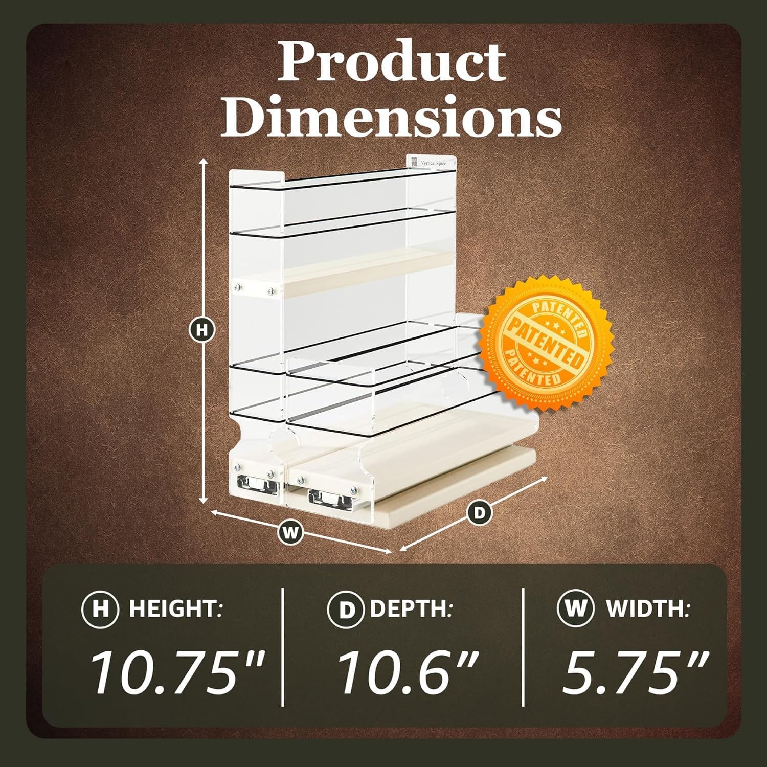 - DURABLE MATERIALS & PATENTED DESIGN: Constructed in the USA with exceptional quality HDPE and acrylic for durability and visibility. Our patented design features flexible polyester sides that stretch to accommodate even oversized containers, making this spice rack a long-lasting addition to your kitchen organization.