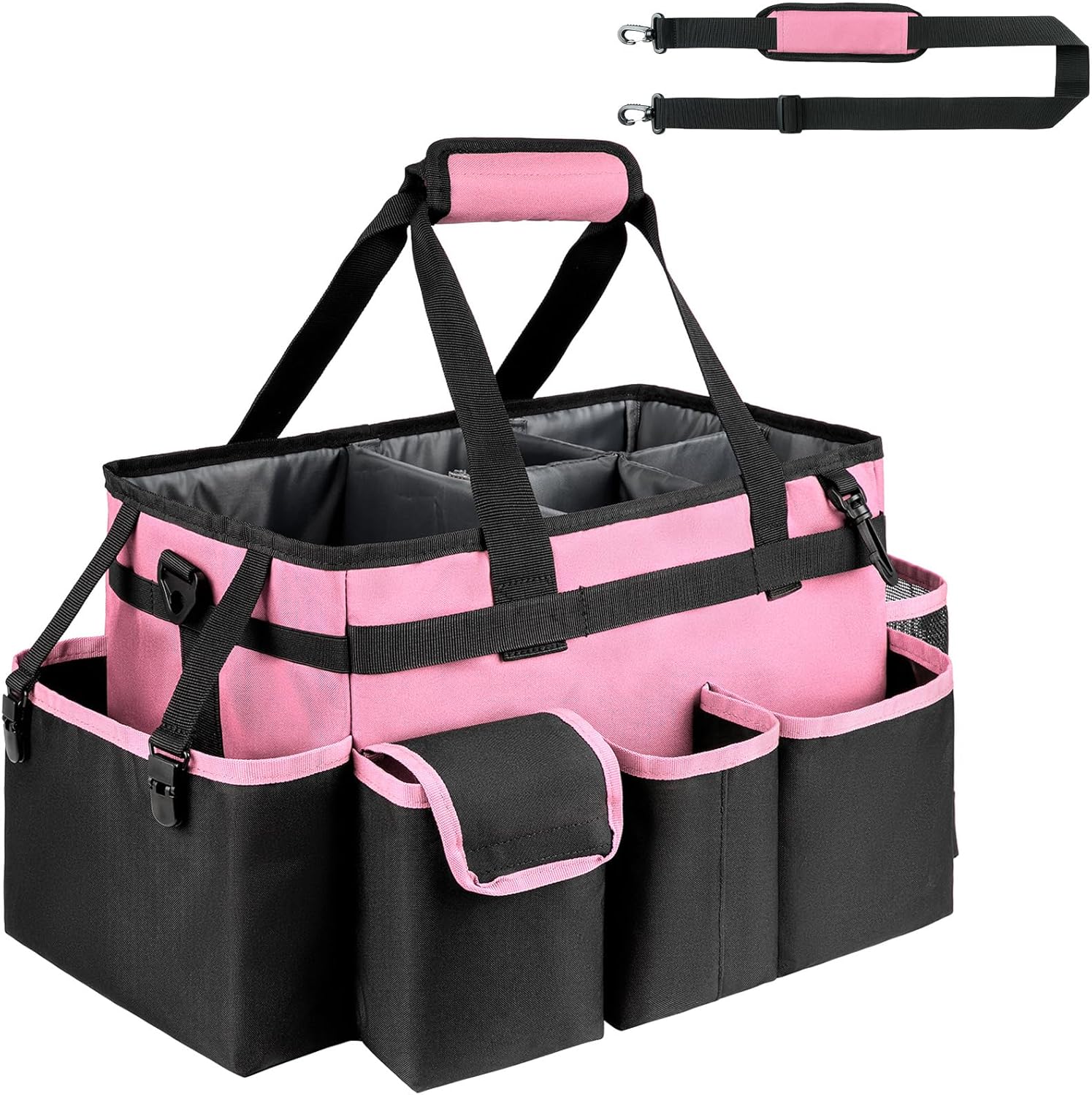 Cleaning Caddy,Large Cleaning Bags for Housekeepers,Cleaning Supplies Organizer with Handle,Pink