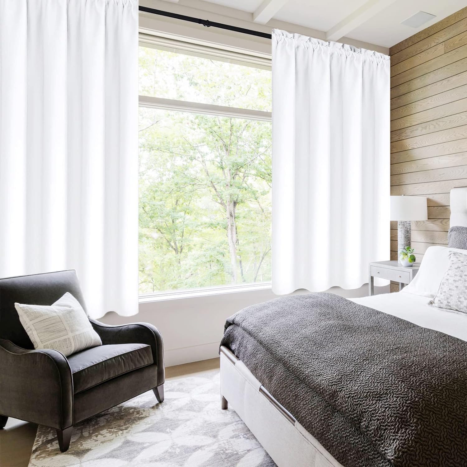 DWCN White Curtains for Living Room Thermal Insulated, 50% Light Blocking Curtains for Bedroom, Dining Room Window, W 52x L 36 Inch, Set of 2 Rod Pocket Curtain Panels