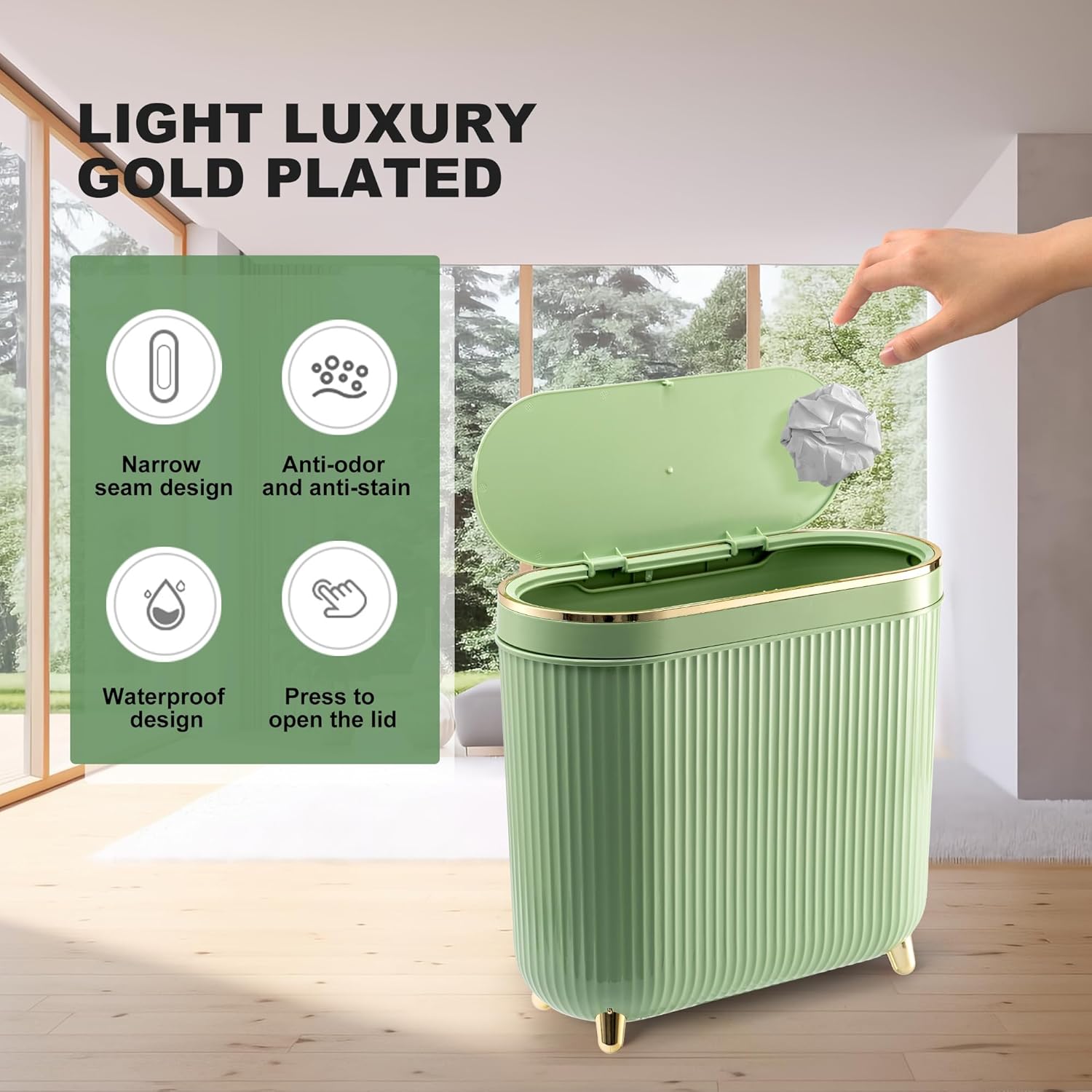 Bathroom Trash Can with Lid 3.2 Gallon Narrow Trash Can Small Plastic Trash Bin 12 Liter with Press Type Lid for Bedroom Bathroom, Mint Green