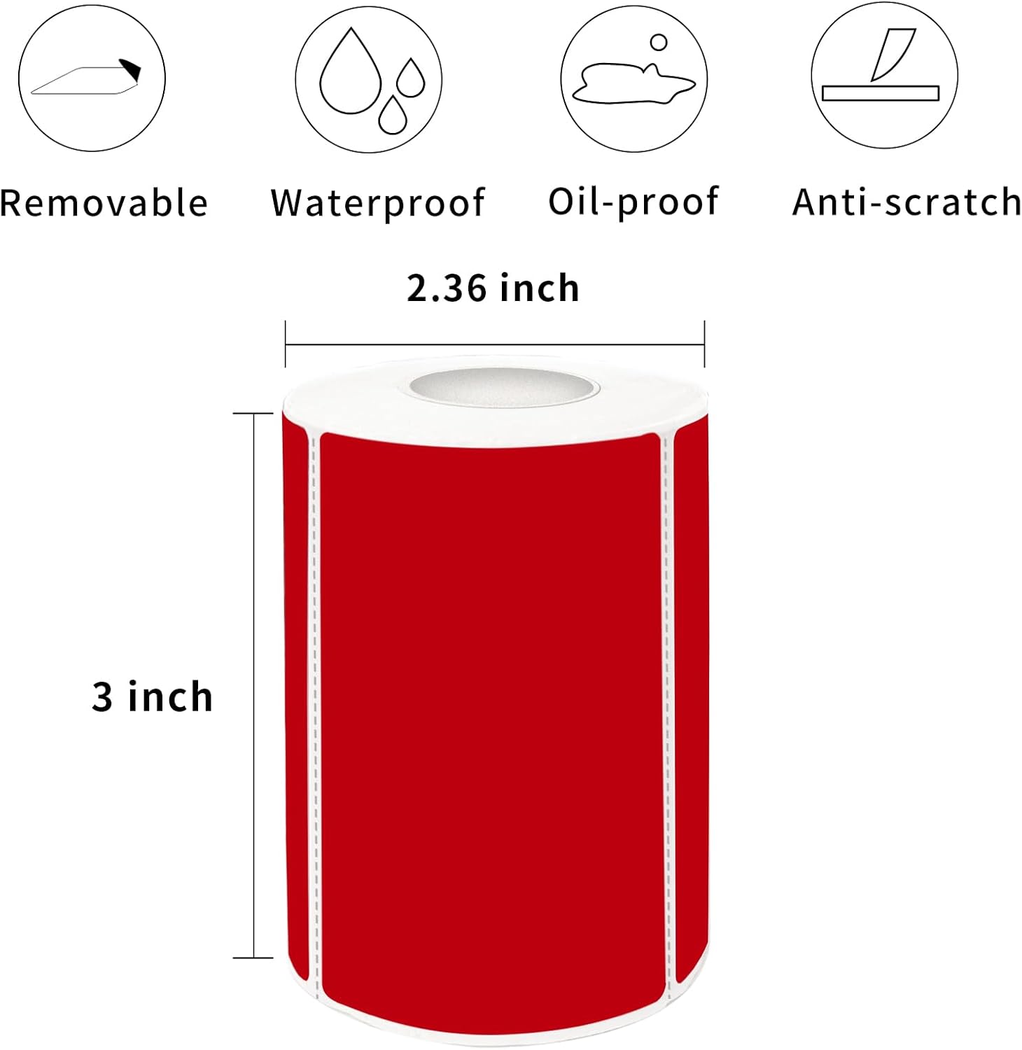 2×3 Inch Red Removable Thermal Labels,Self-Adhesive Square Direct Thermal Labels,300 Sheets per Roll with Perforated Lines