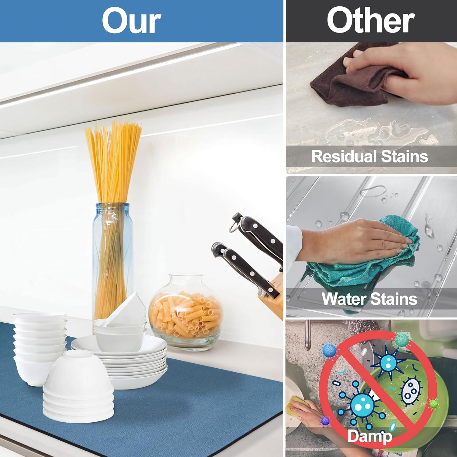 - Dish Drying Mat: Each kitchen counter mat measures 17 x 31.5 inches, which is larger than ordinary draining mats and can hold large pots, pans, and more dishes. Dishmats are perfect for kitchen counters and bathroom countertops.