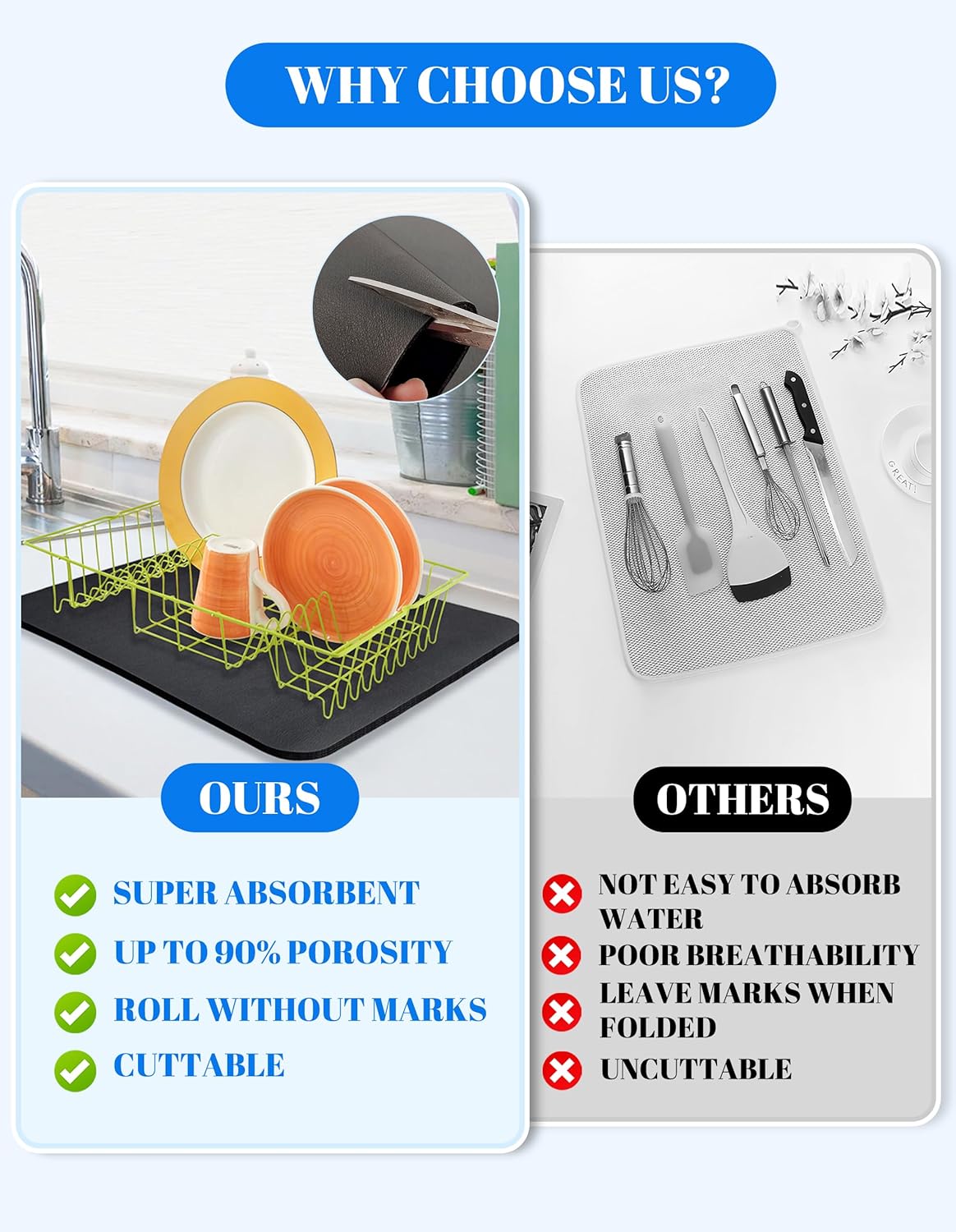 - DISH DRYING MAT: The drying mat is soft and absorbent, Always keep countertops clean and tidy. A practical kitchen mat accessory is definitely worth choosing.