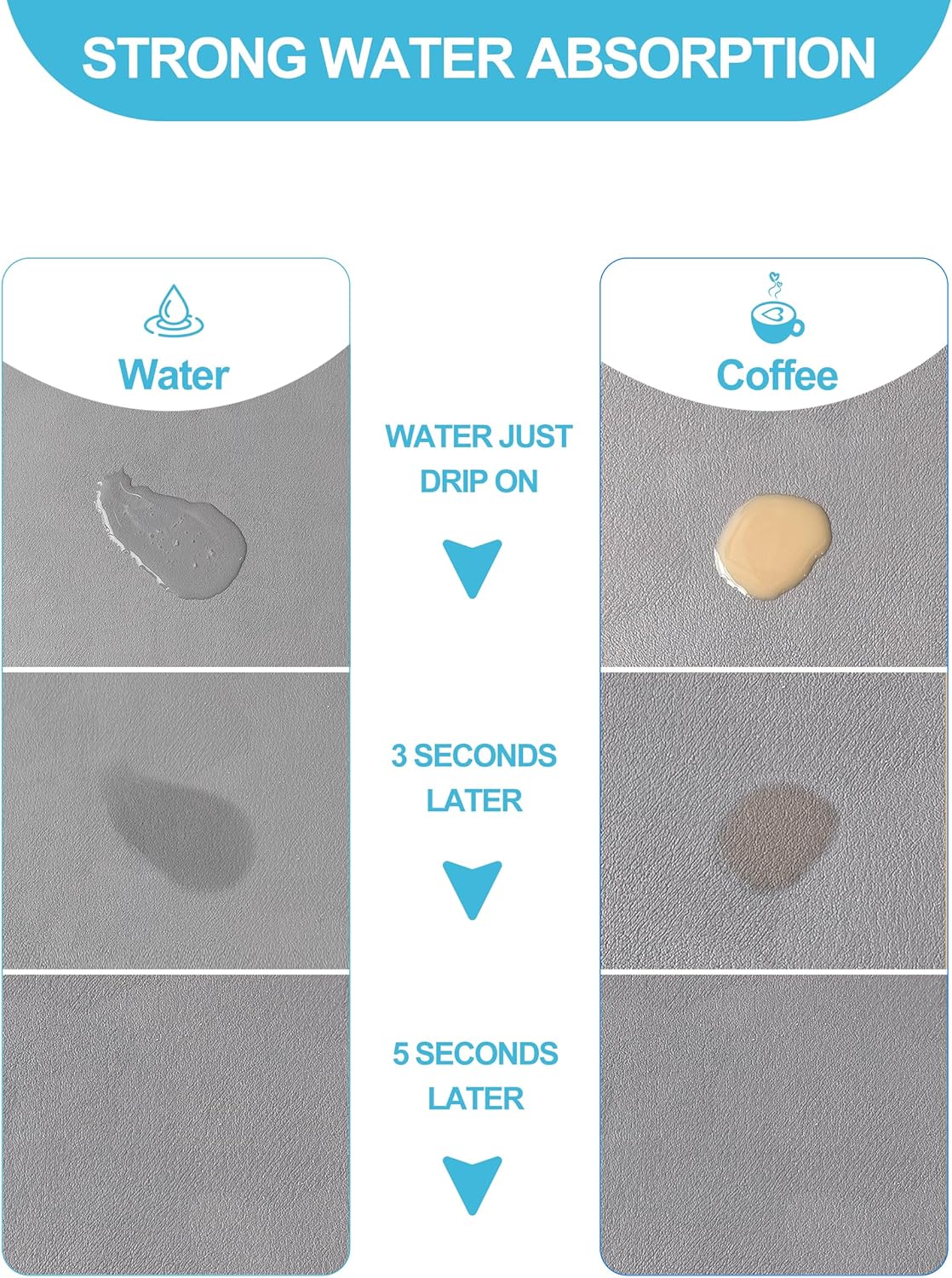 - SUPER ABSORBENT: The microfiber tableware dish drying mat is made of high-absorbent nanomaterials. Special PU surface hide coffee stains, milk stains and any other dark messy stains well. In addition, the drying mat is thick enough to better protect countertops, tableware, and glassware from damage and contamination.
