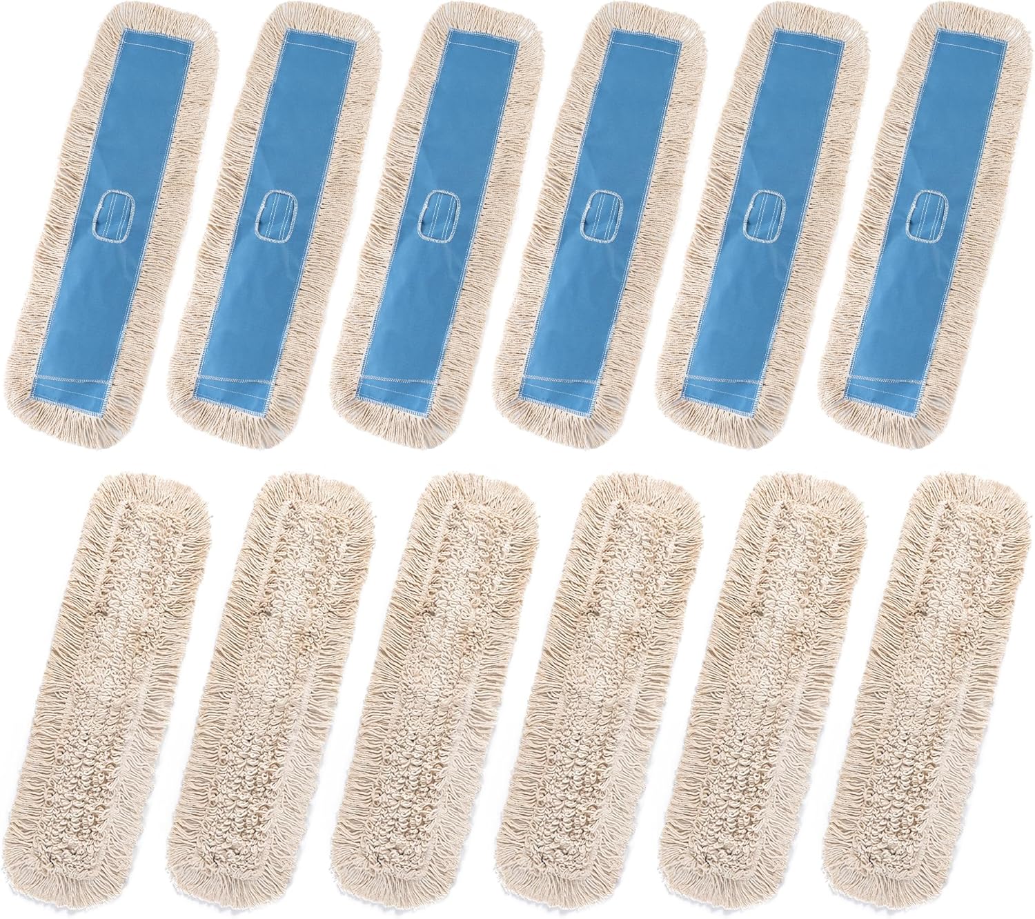 Matthew Cleaning 36'' Industrial Strength Cotton Dust Mop Refill Washable Replacement Heads for Residential & Commercial Use Fit Standard Dust Mop Frames, Hardwood, Concrete Floors Blue&White 12 Pack