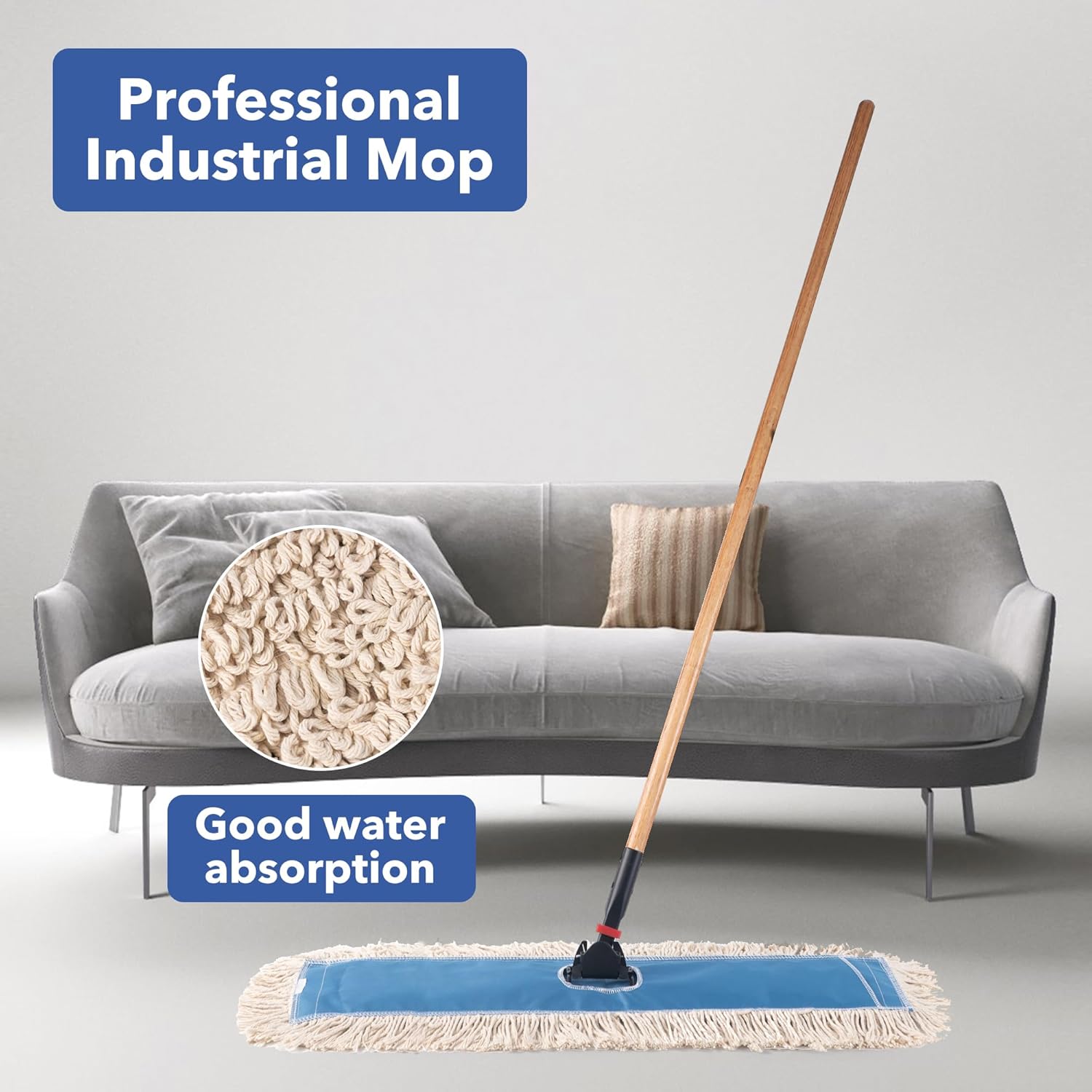 Matthew Cleaning 36'' Industrial Strength Cotton Dust Mop Refill Washable Replacement Heads for Residential & Commercial Use Fit Standard Dust Mop Frames, Hardwood, Concrete Floors Blue&White 3 Pack