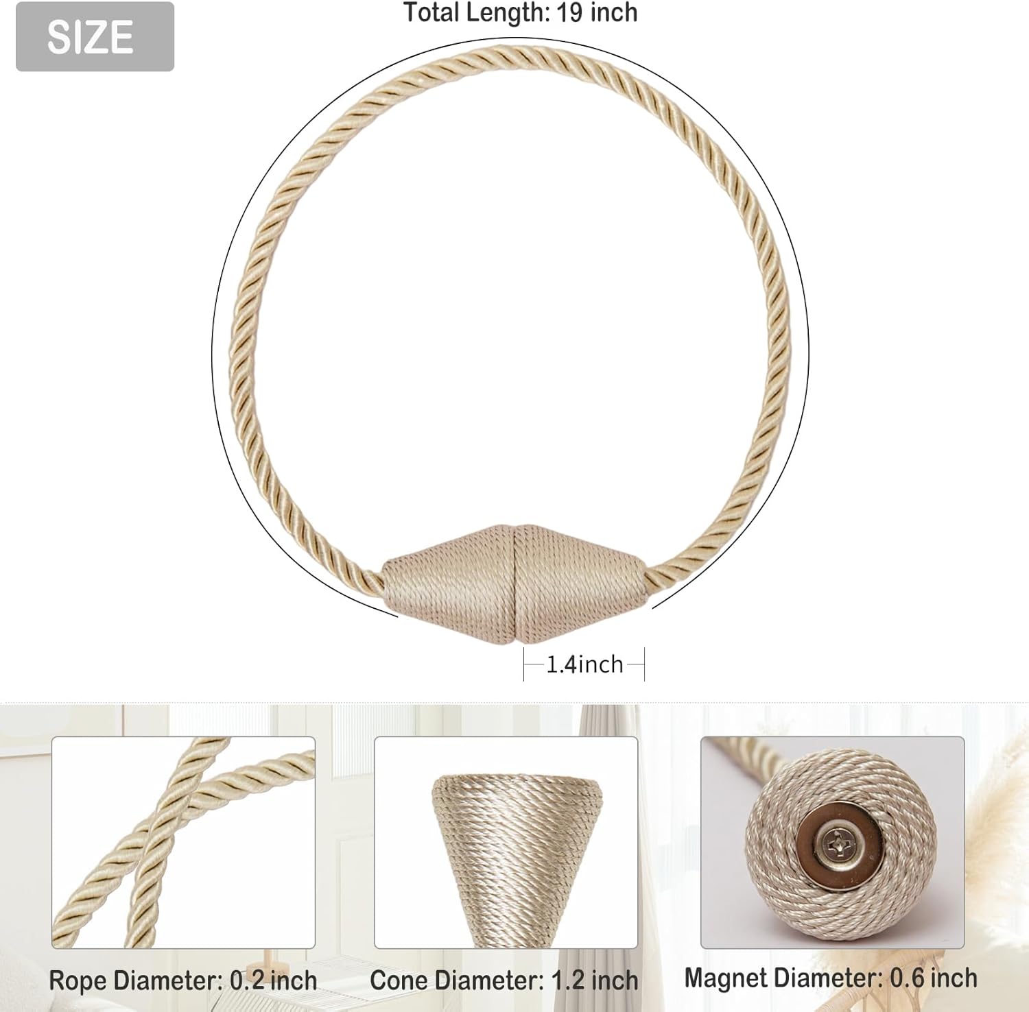 Magnetic Curtain Tiebacks 8 Pack Outdoor Rope Curtain Tie Backs Decorative Window Treatment Holdbacks for Home Decorative Curtain, Beige