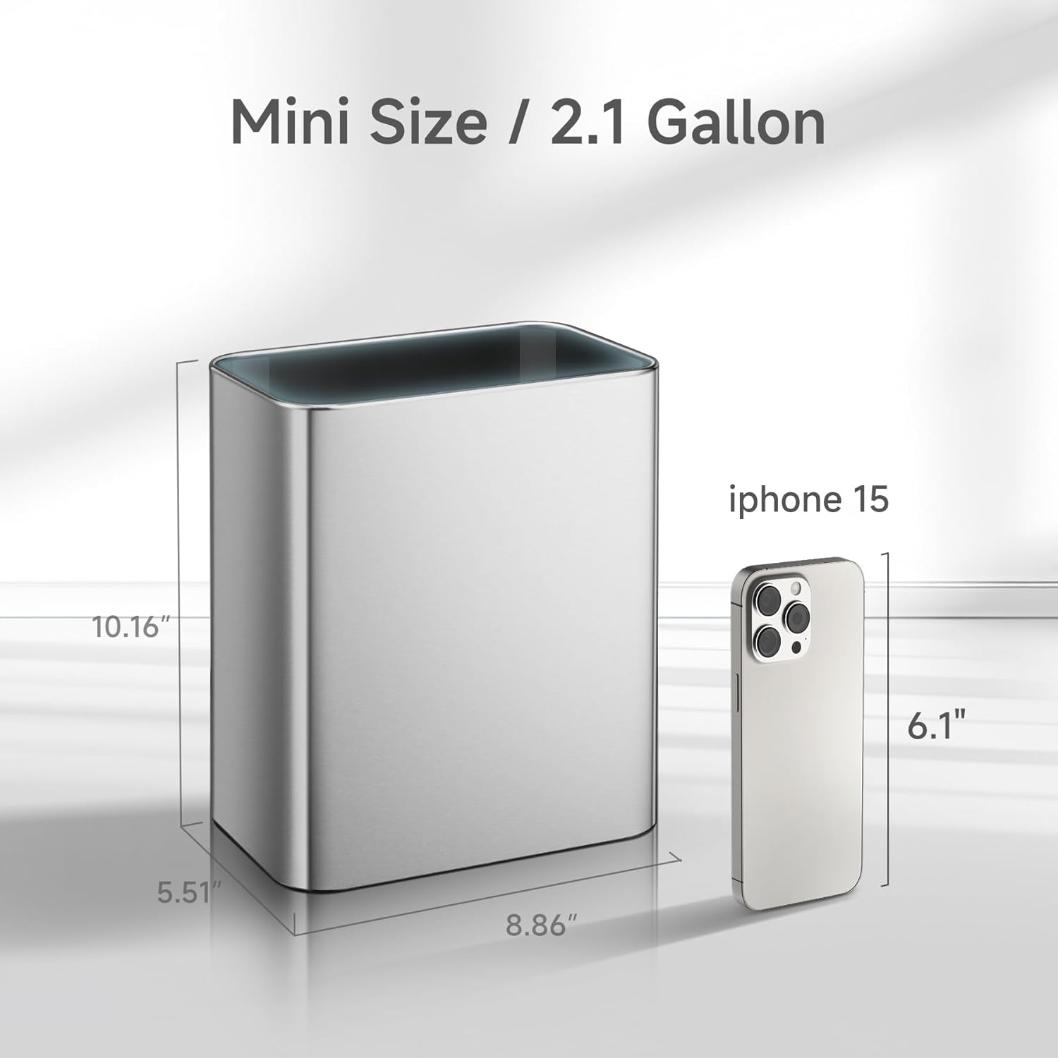 - 【Perfect Size for Narrow Spaces】The compact design of this 8L trash bin makes it fit well in bathrooms, on the table, under sinks or wherever space is limited