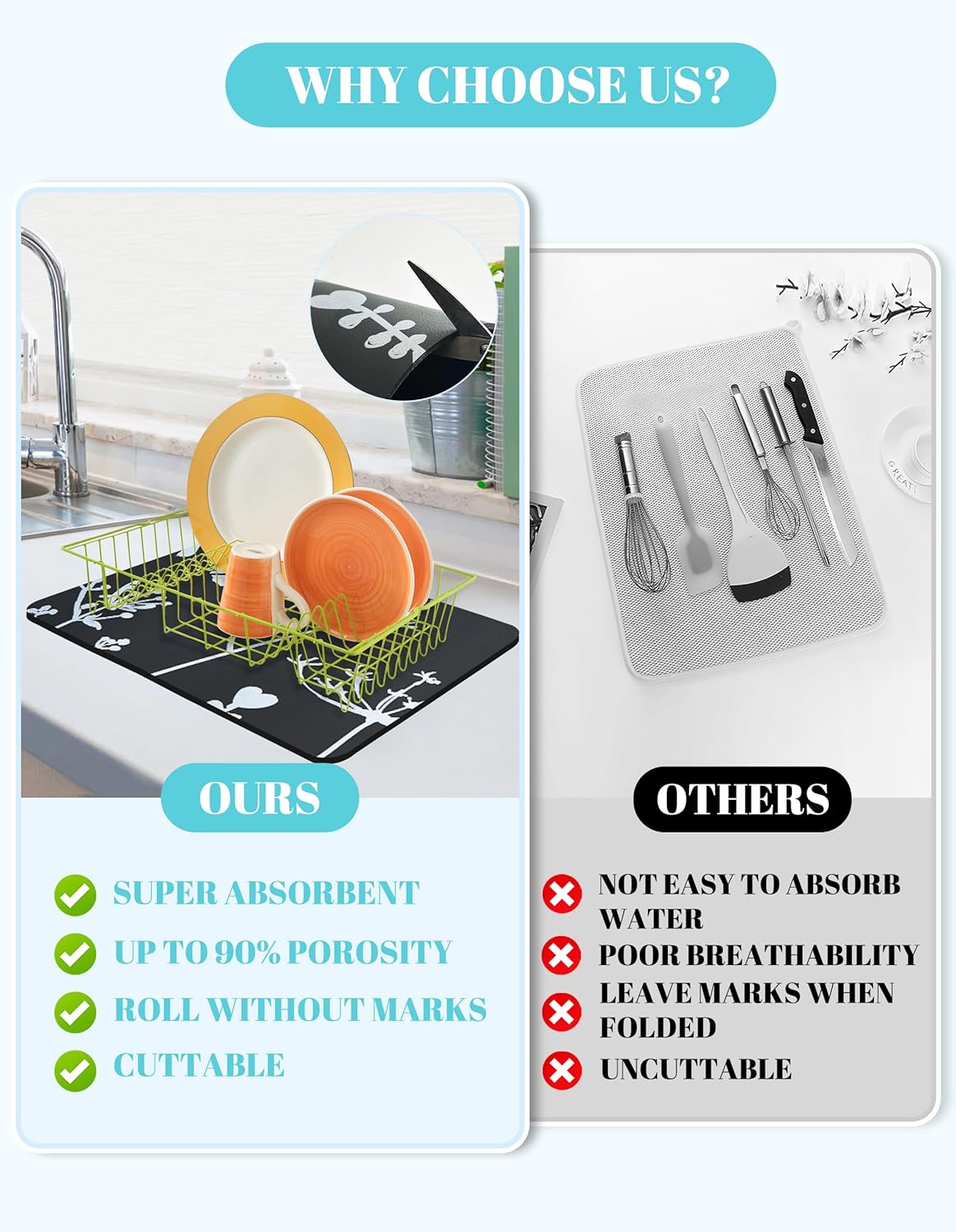 - DISH DRYING MAT: The drying mat is soft and absorbent, Always keep countertops clean and tidy. A practical kitchen mat accessory is definitely worth choosing.
