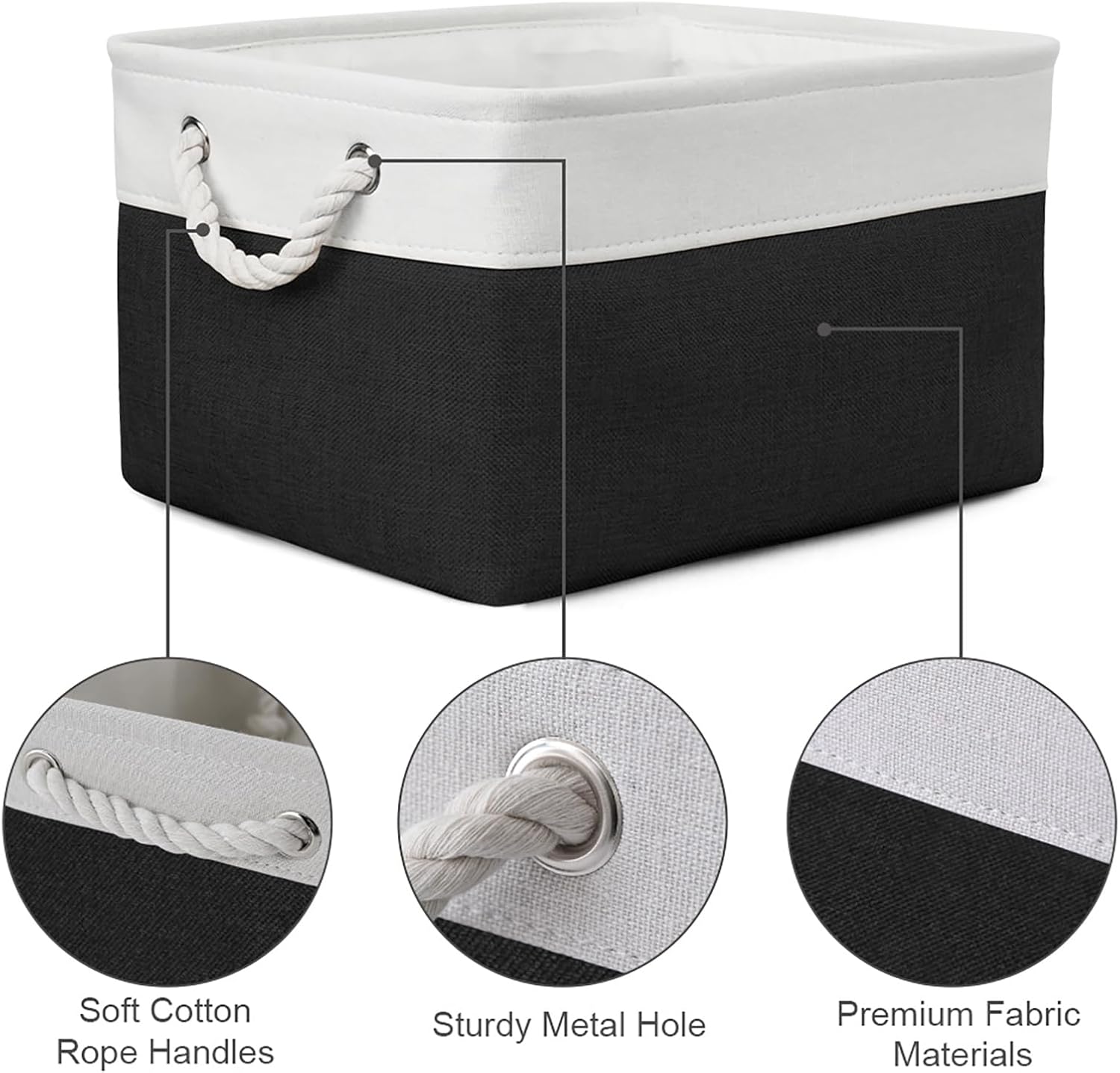 TheWarmHome Storage Basket for Organizing - Large 3 Pack 15.7x11.8x8.3 inch Collapsible Storage Bin for Shelves with Handles Laundry Cube Toy Closet Nursery (Whiet & Black)
