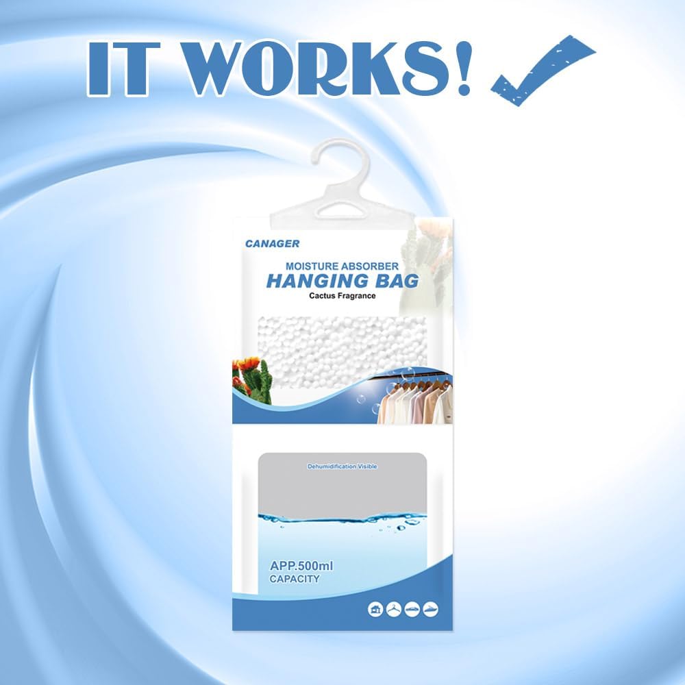 CANAGER Hanging Moisture Absorber, Cactus Fragrance Moistureproof Hanging Bag, Dehumidifier Bag (8 packs) Hanging Closet Dehumidifier Bags, Moisture Absorb 12.5 oz.