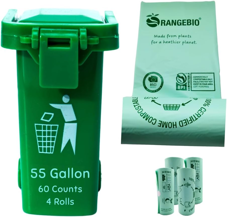 - Home Compostable Bags Certified by BPI, DIN CERTCO, and OK Compost, OrangeBio compost bags can completely turn into CO2, H2O, and rich humus within 90 days in both industrial and home backyard systems. The residue has no toxic side effects and can help alleviate soil hardening, while also returning nutrients to the earth.
