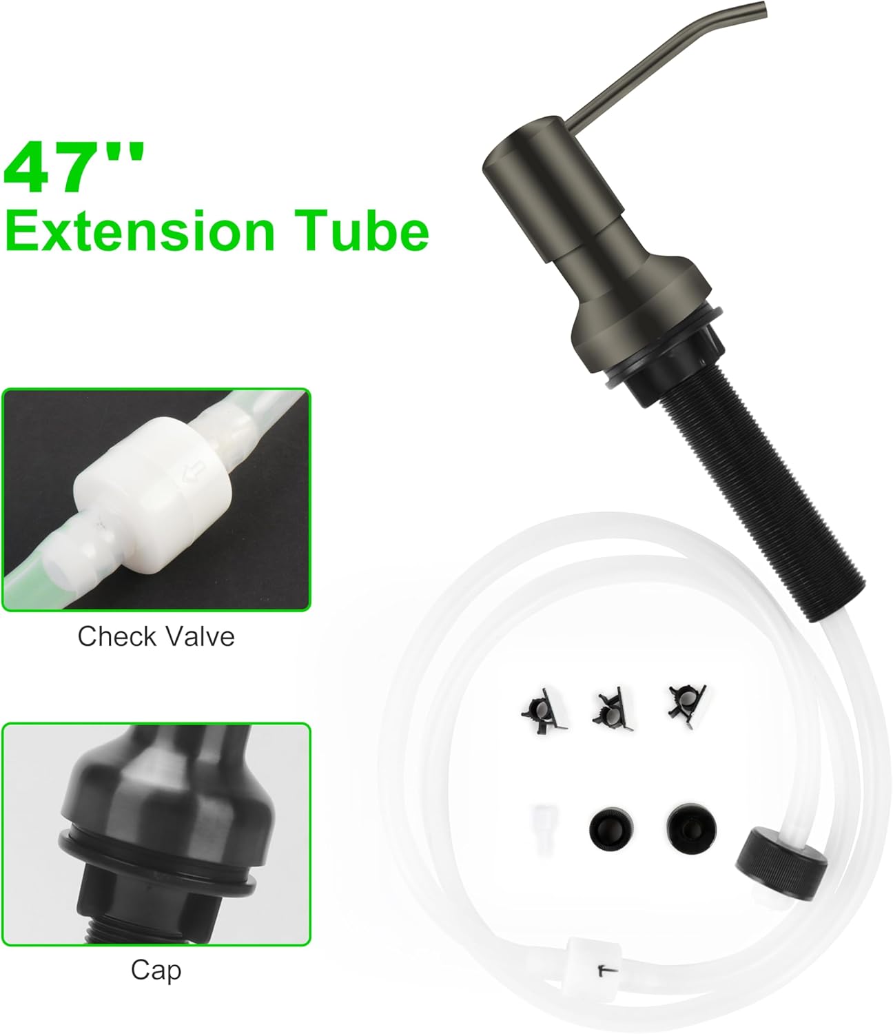 - Easy Installation: You will find that our sink soap dispenser extension tube kit is simple to install and use, it only takes moments to fit the tube into this kitchen sink soap dispenser. If you do not know how to install, check the installation manual and install videos on our product page, or contact us, we will try our best to help you.